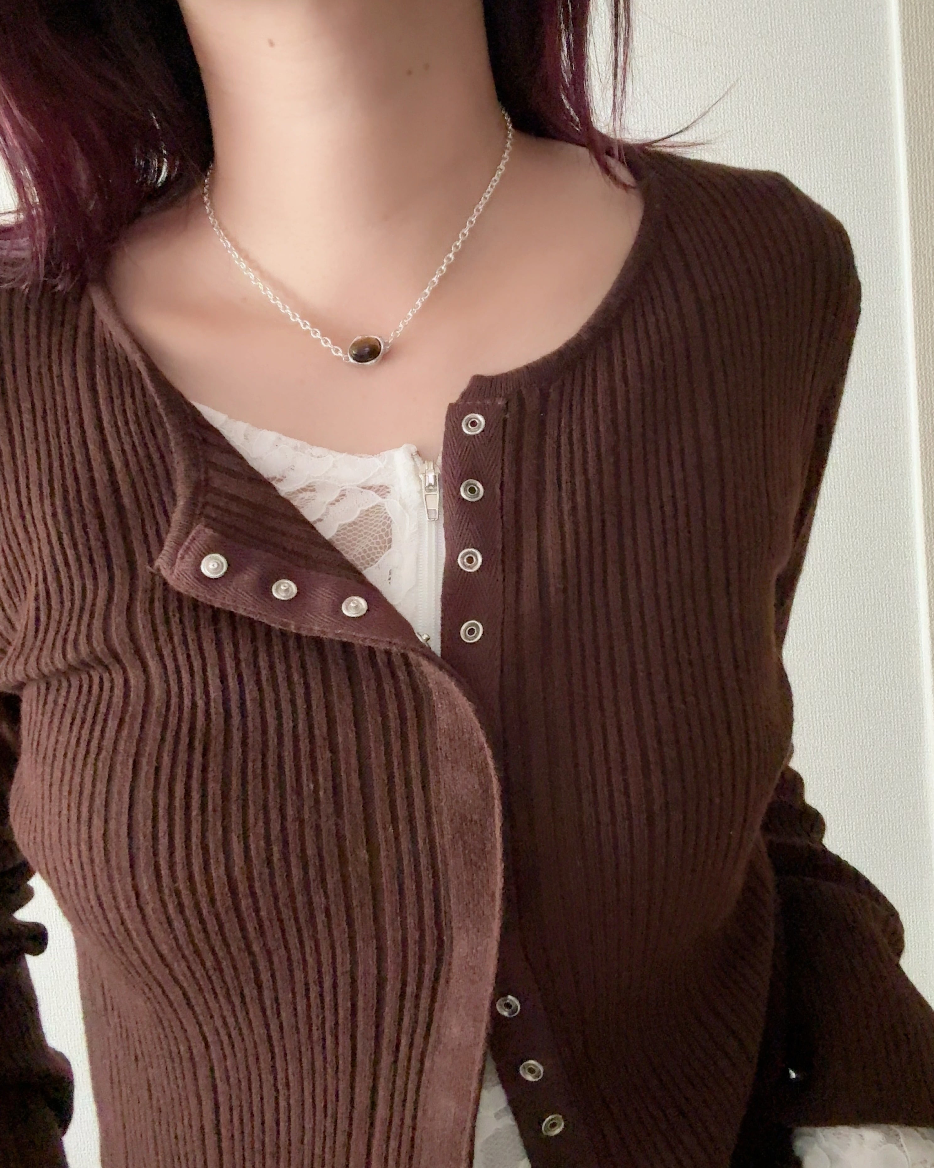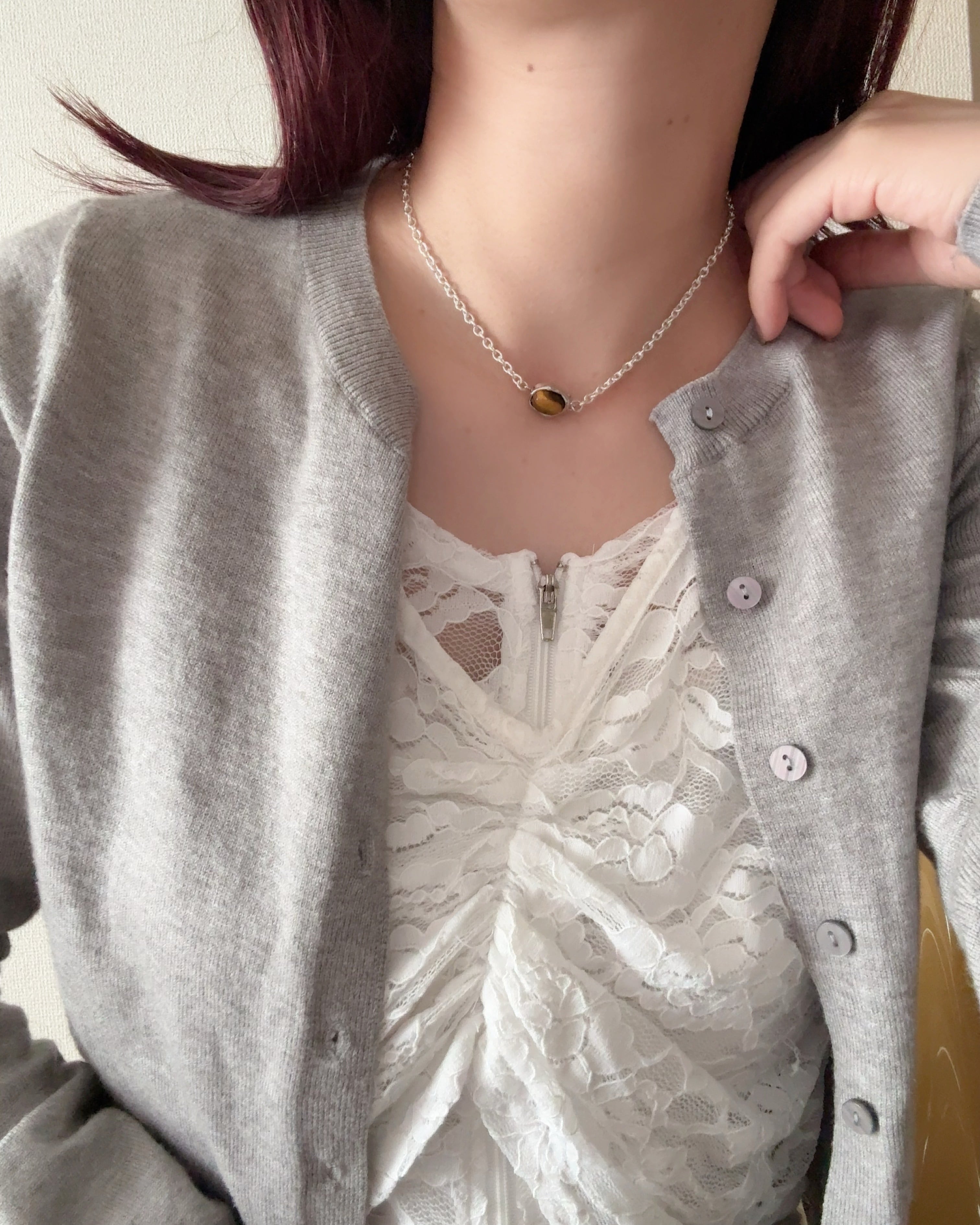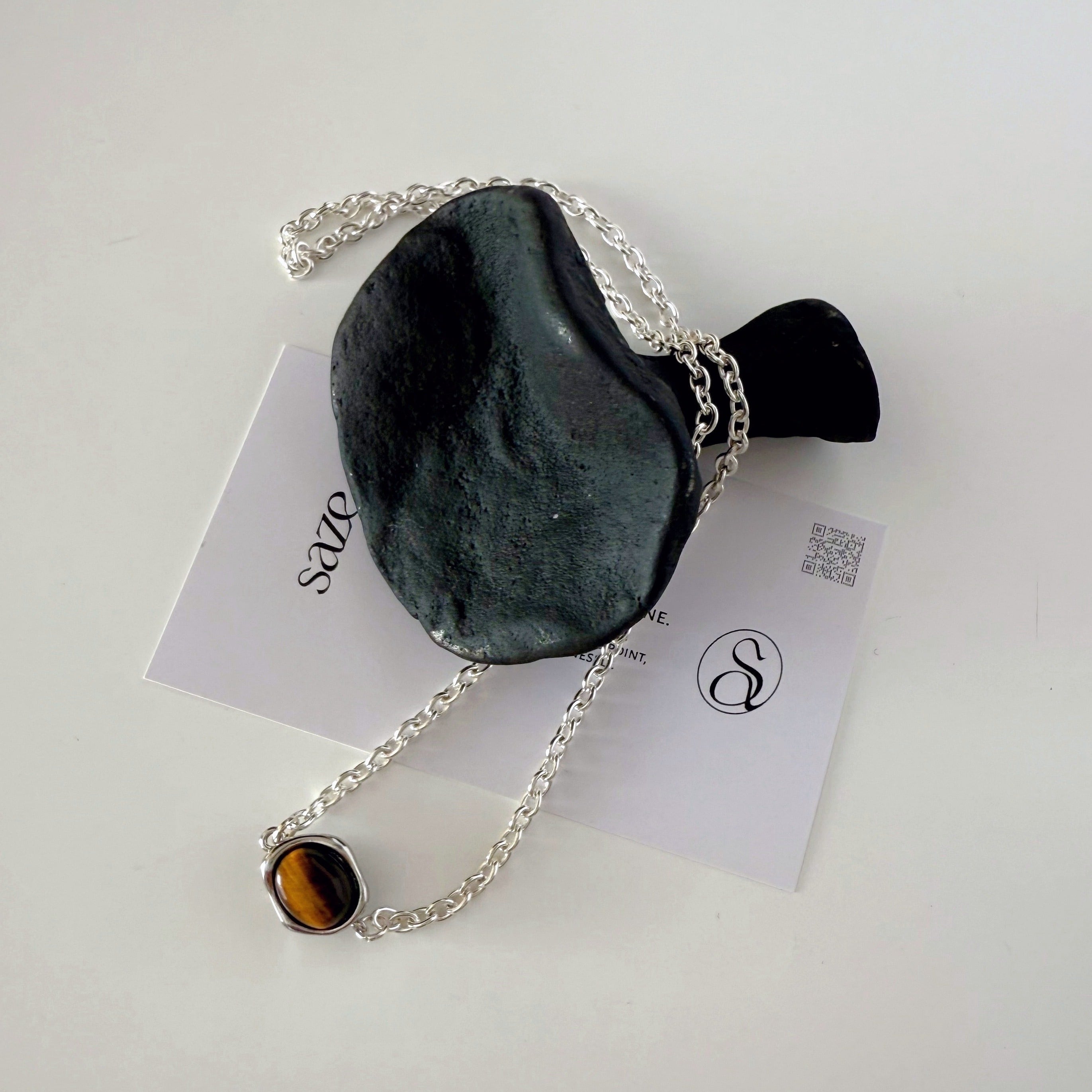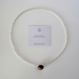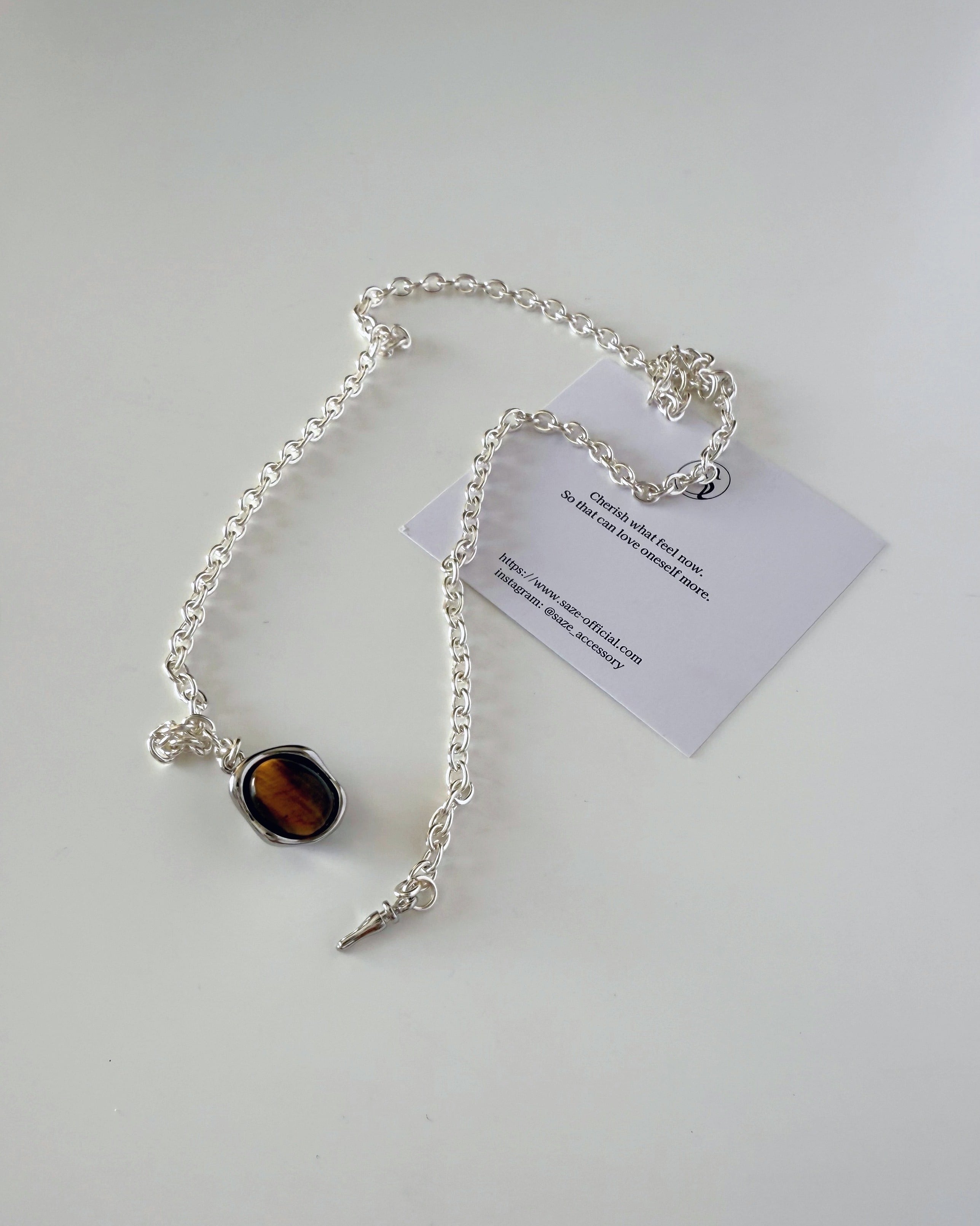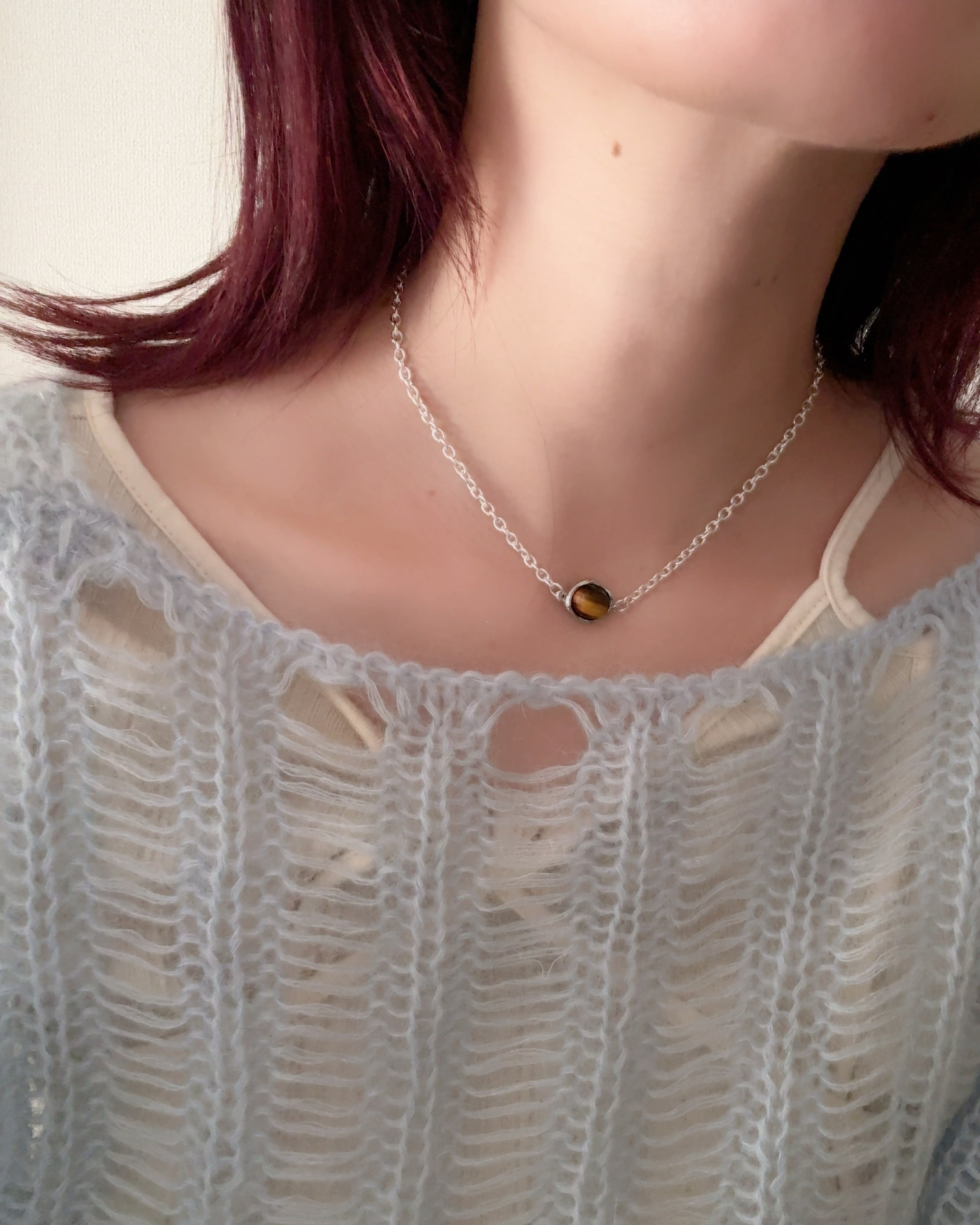 虎の目のような模様が特徴のタイガーアイが留め具になっている