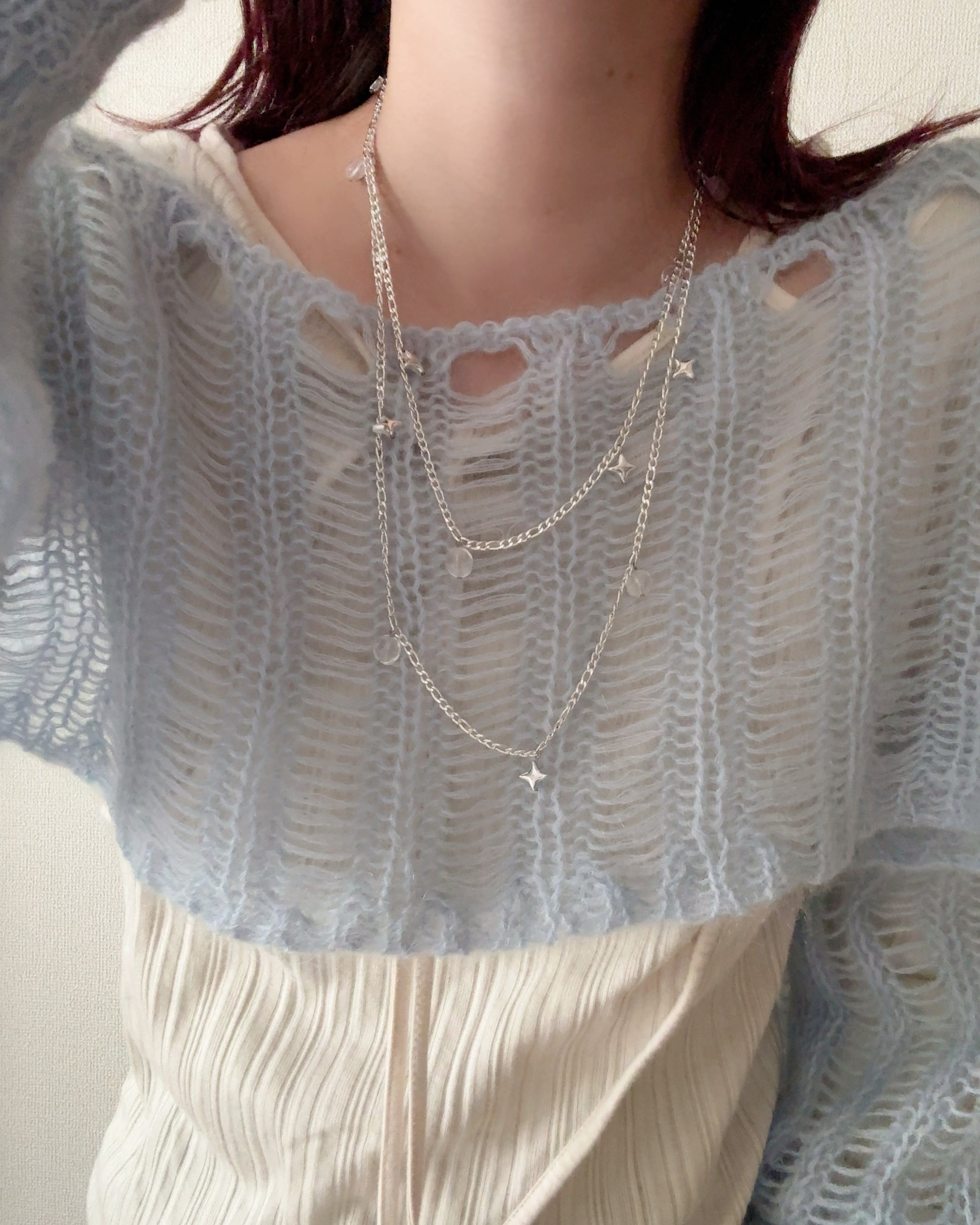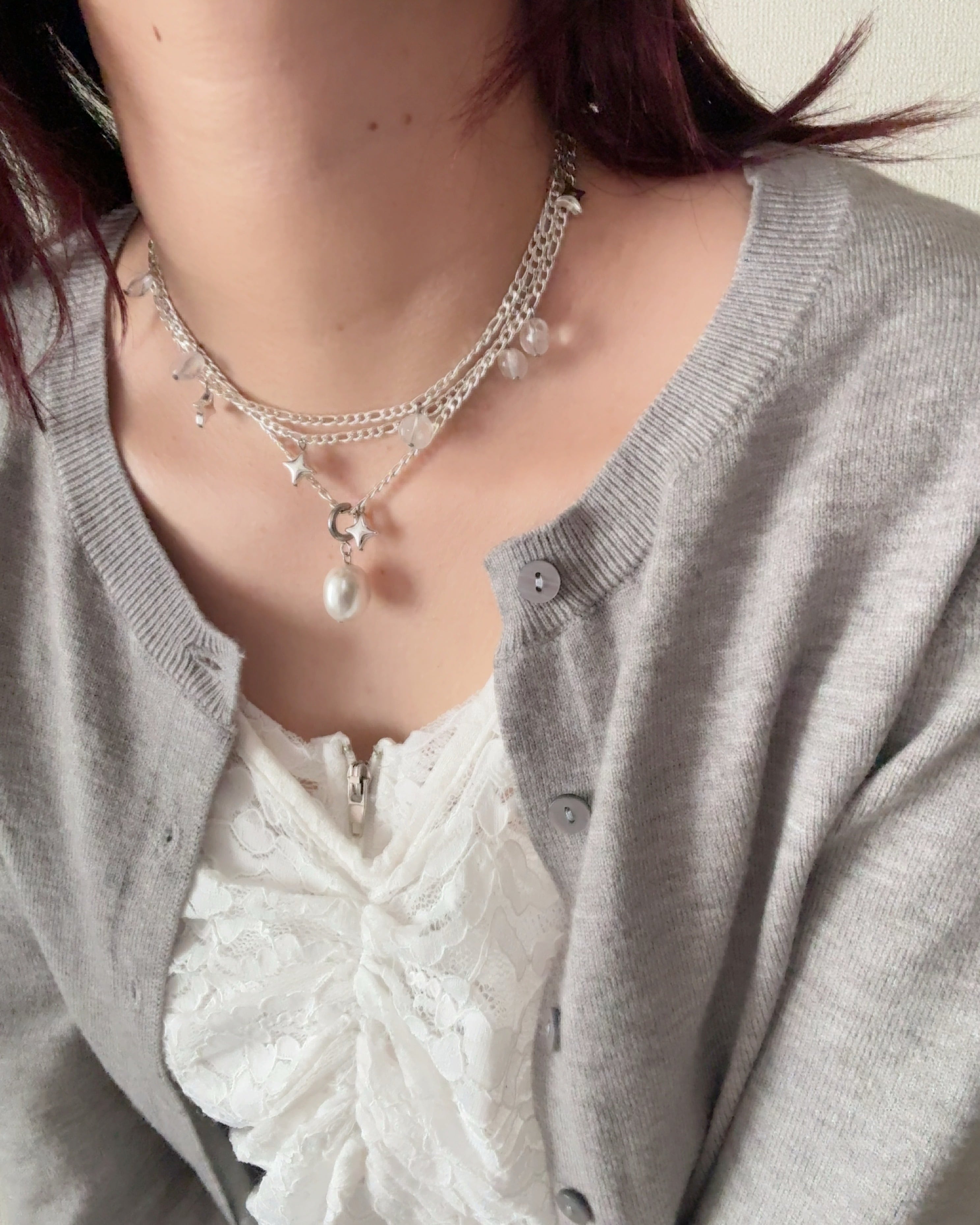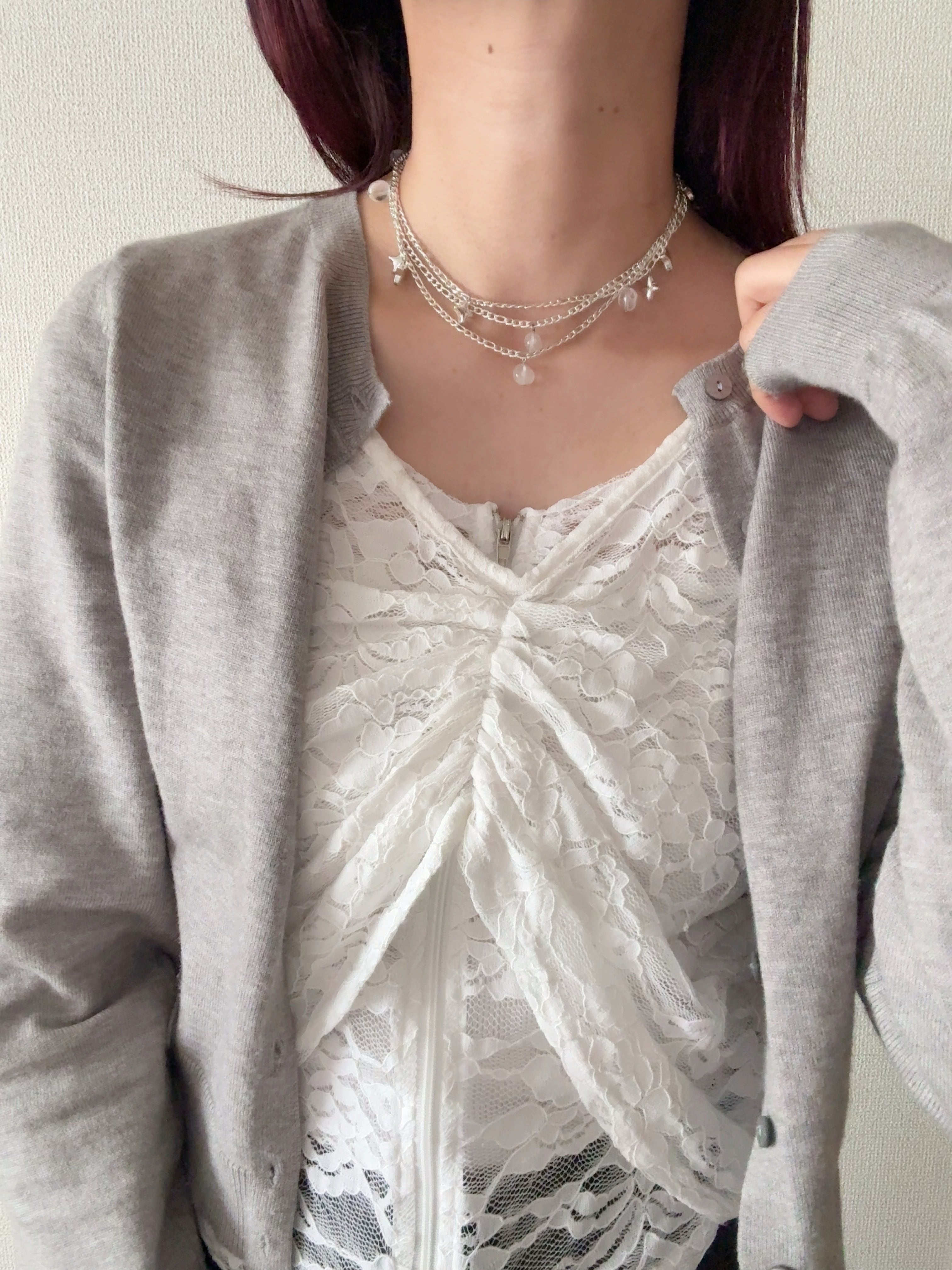 ホワイトシルバーの太すぎないチェーンをセレクトして