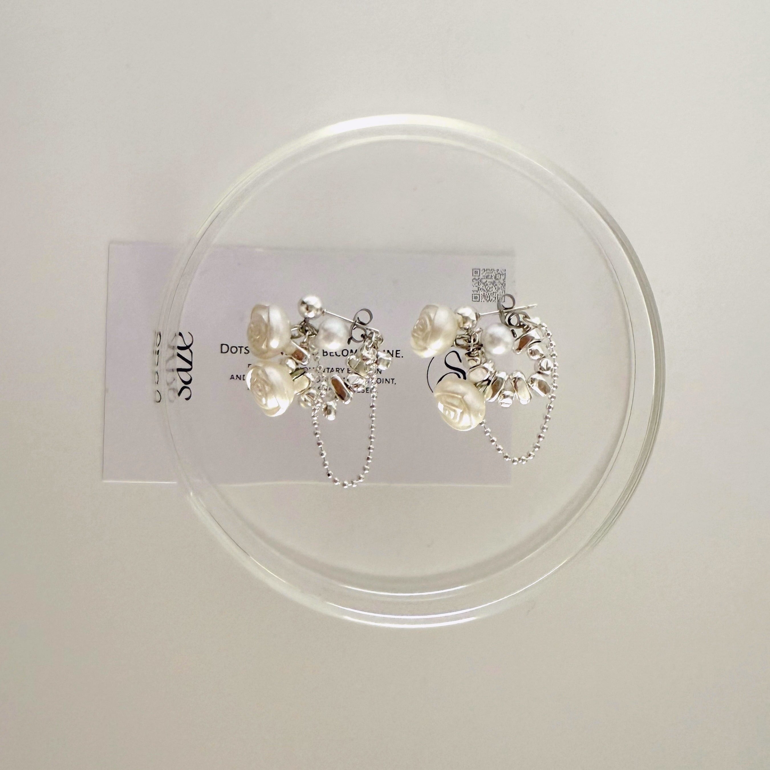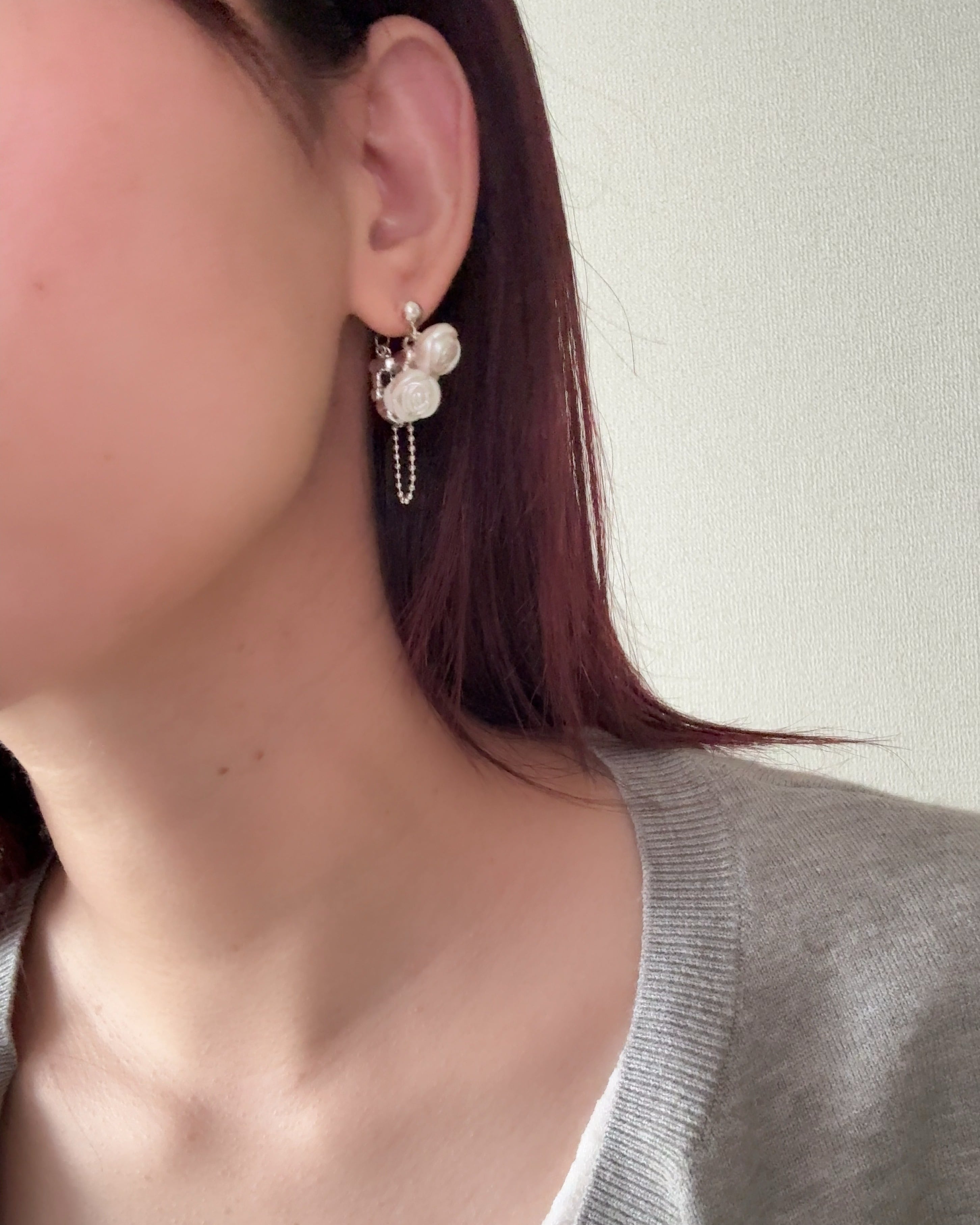 耳たぶの下にぽんぽんっと咲く薔薇がかわいらしく