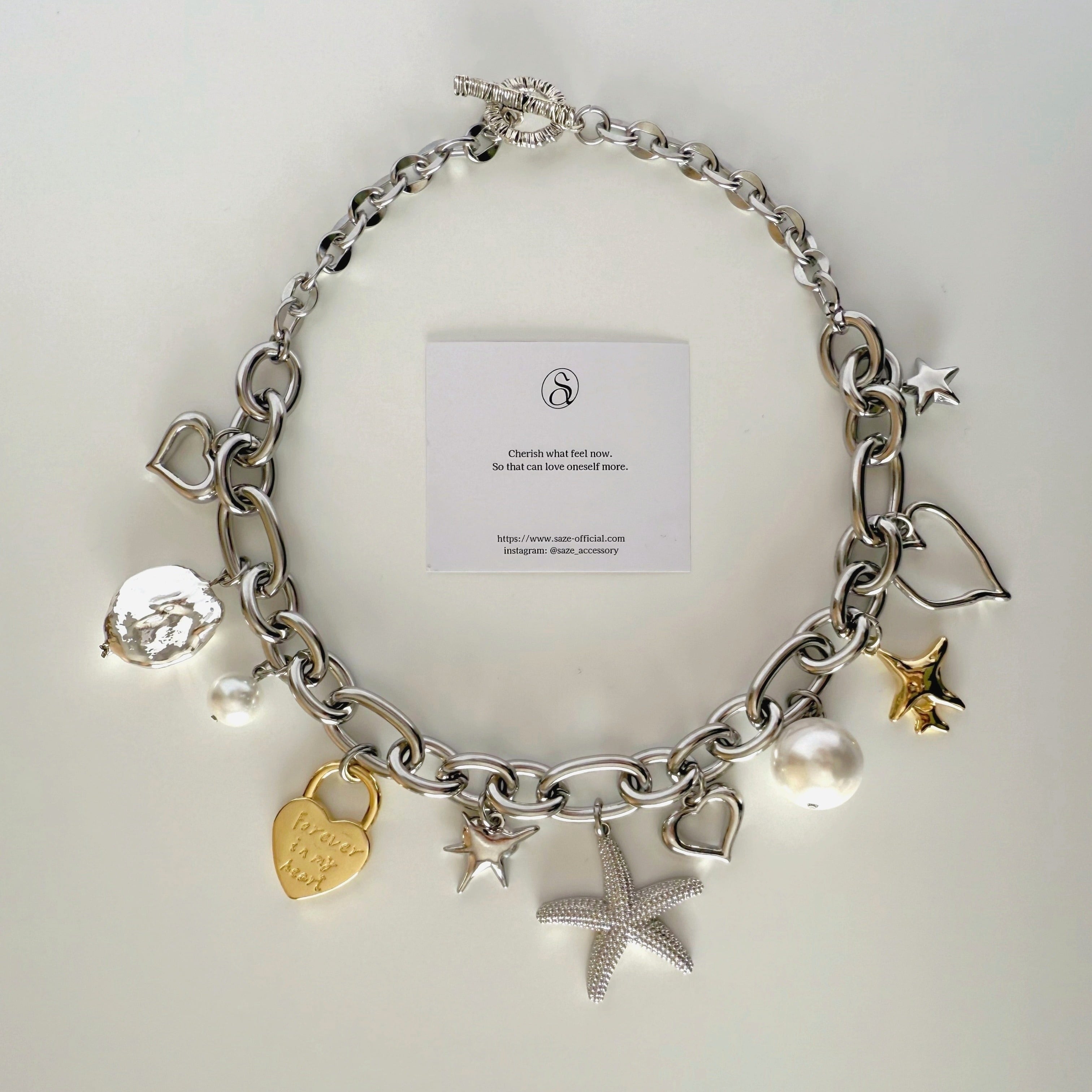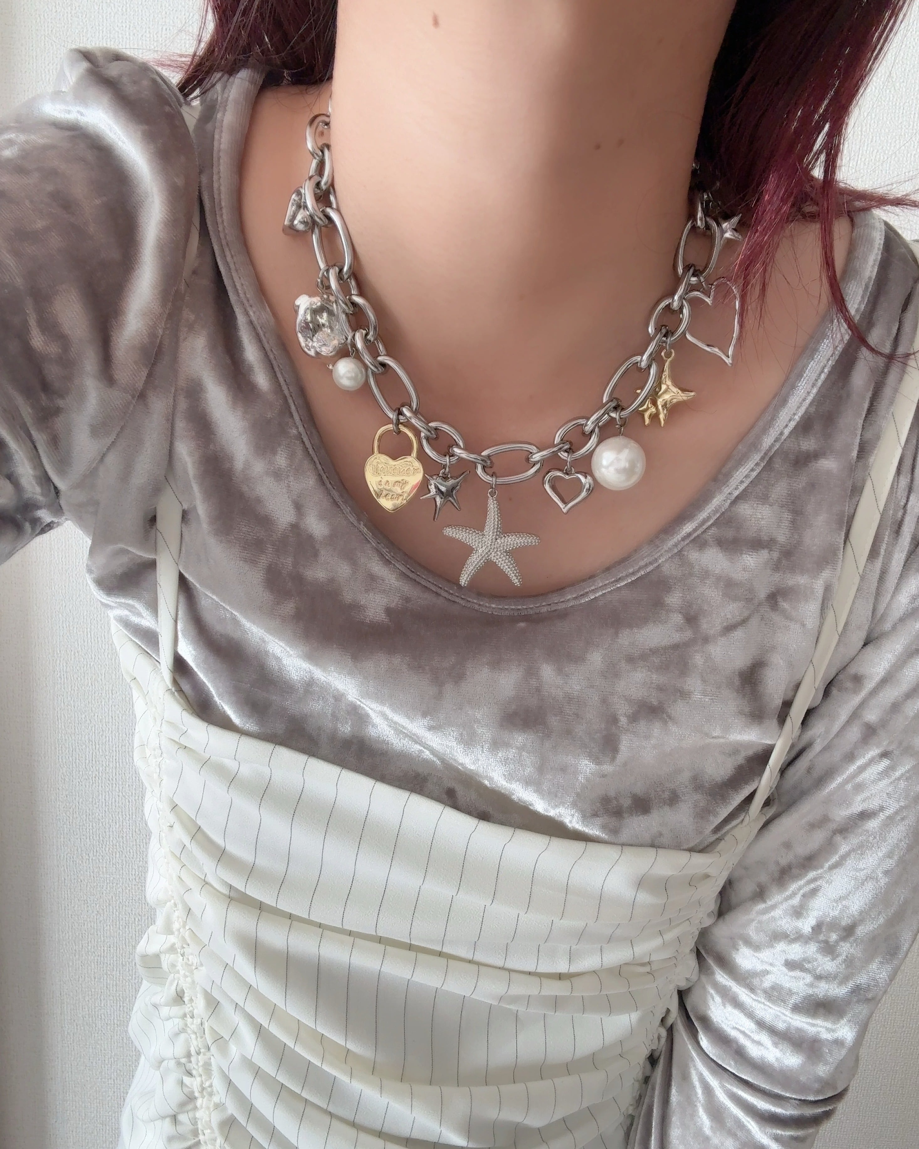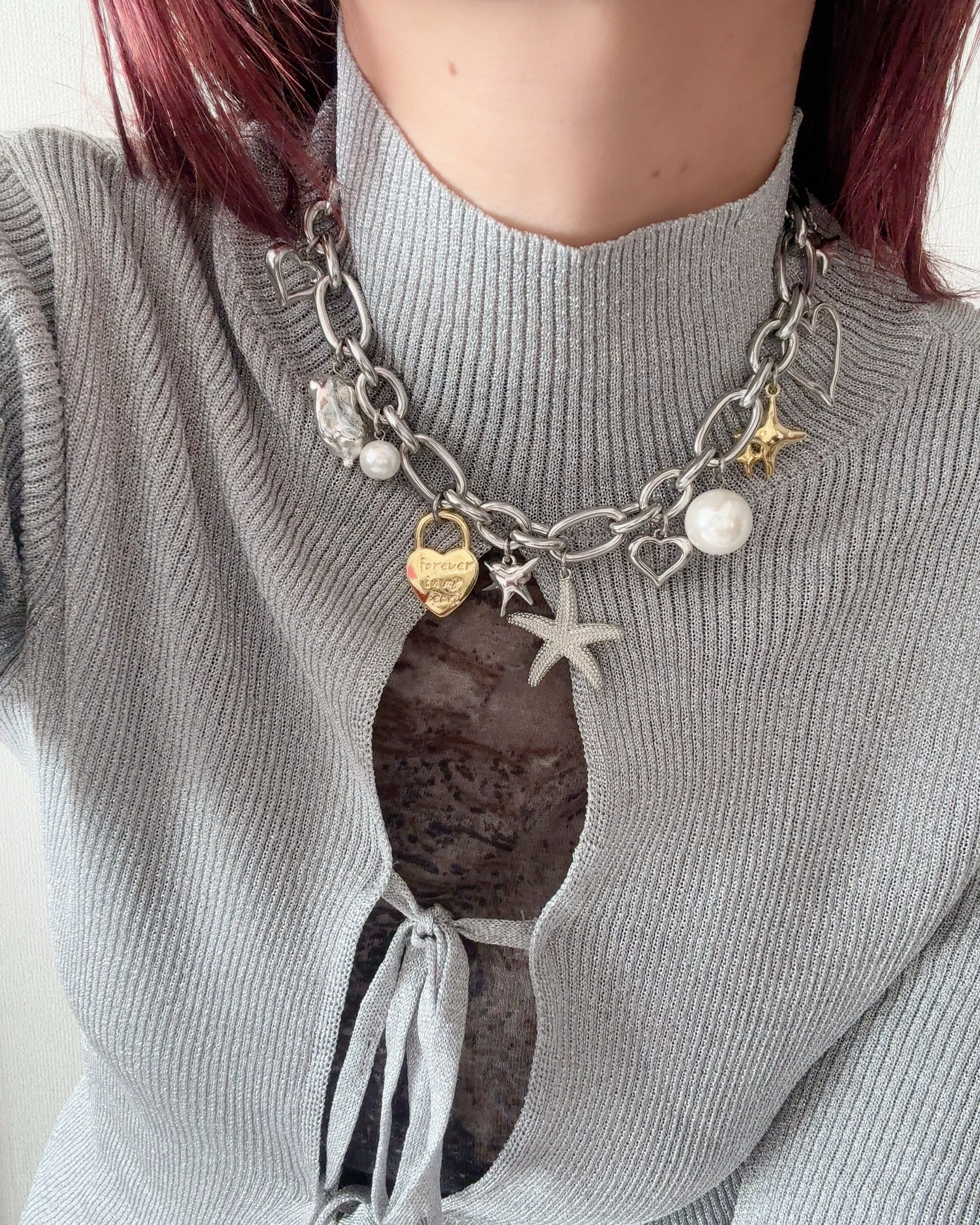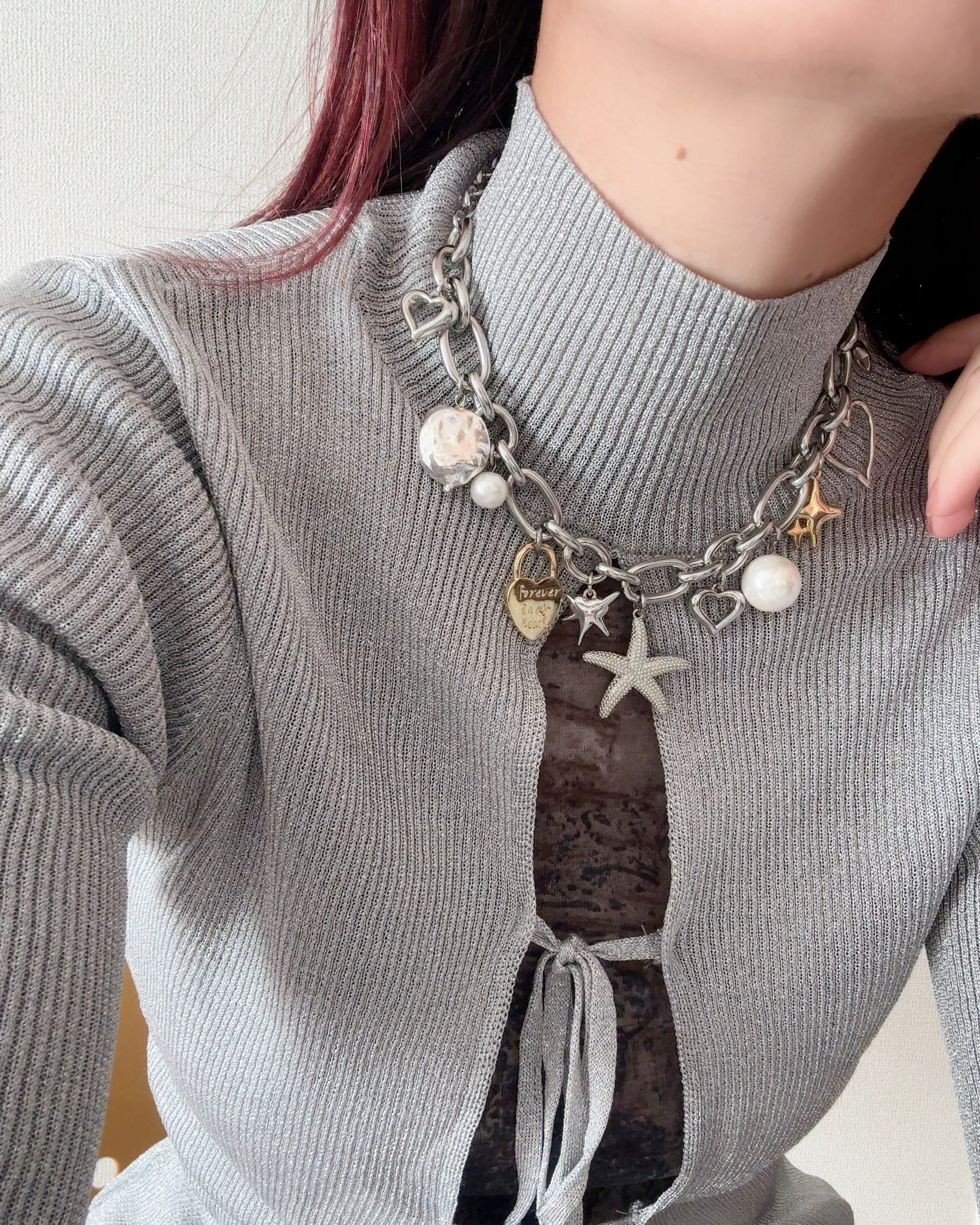 いろんなチャームを贅沢にあしらったボリュームネックレス