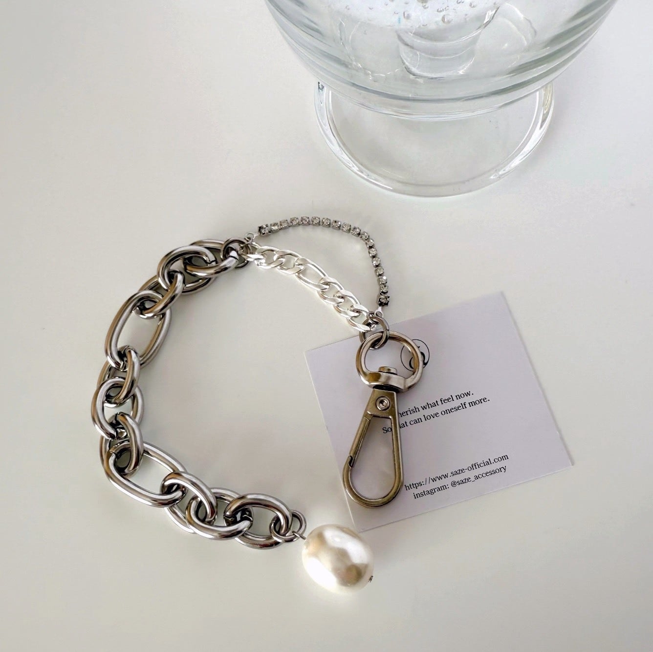 シェルパール(チェーン)ステンレす、キュービックジルコニア(留め具)合金