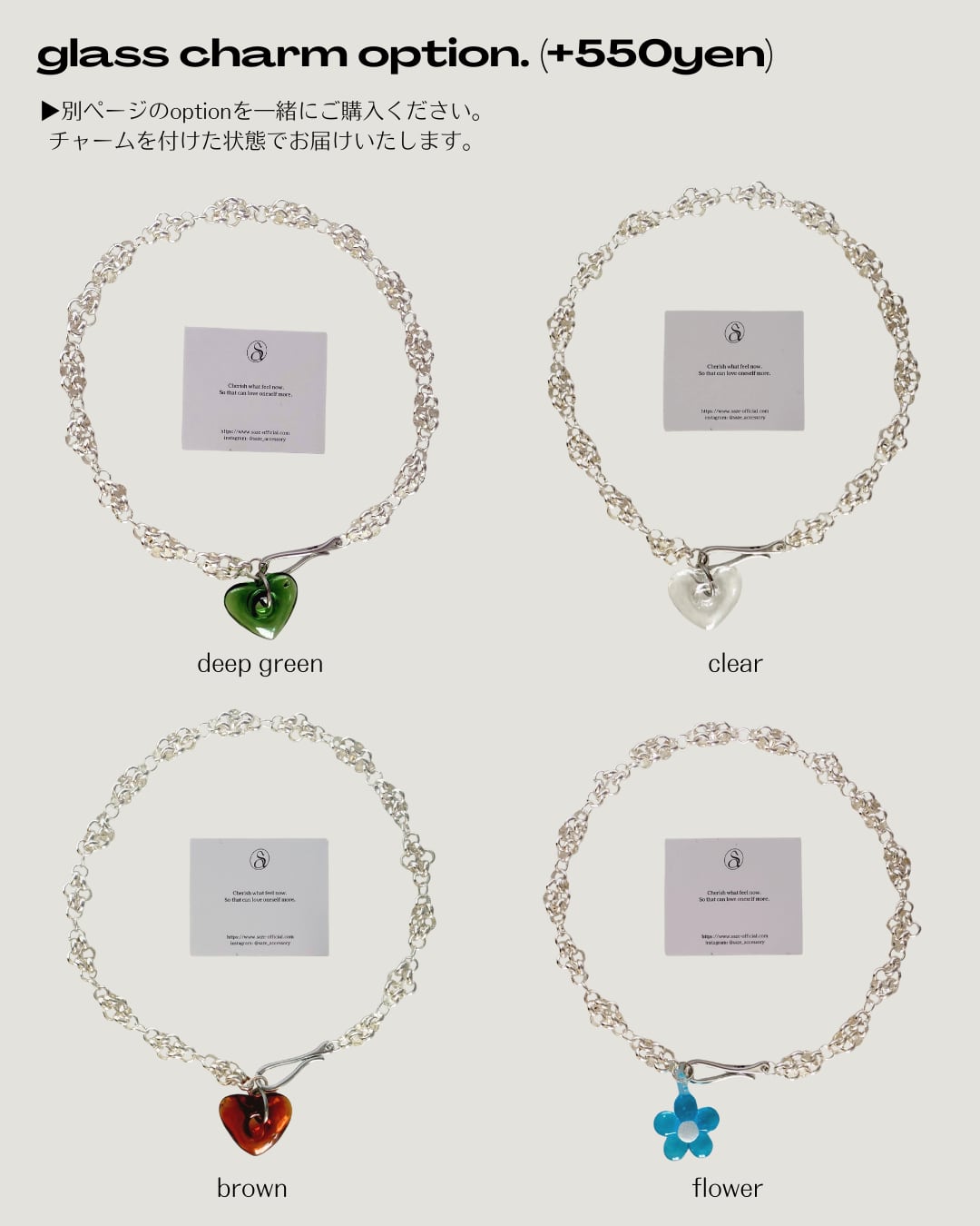 別ページの「glass charm」を一緒にご購入ください。