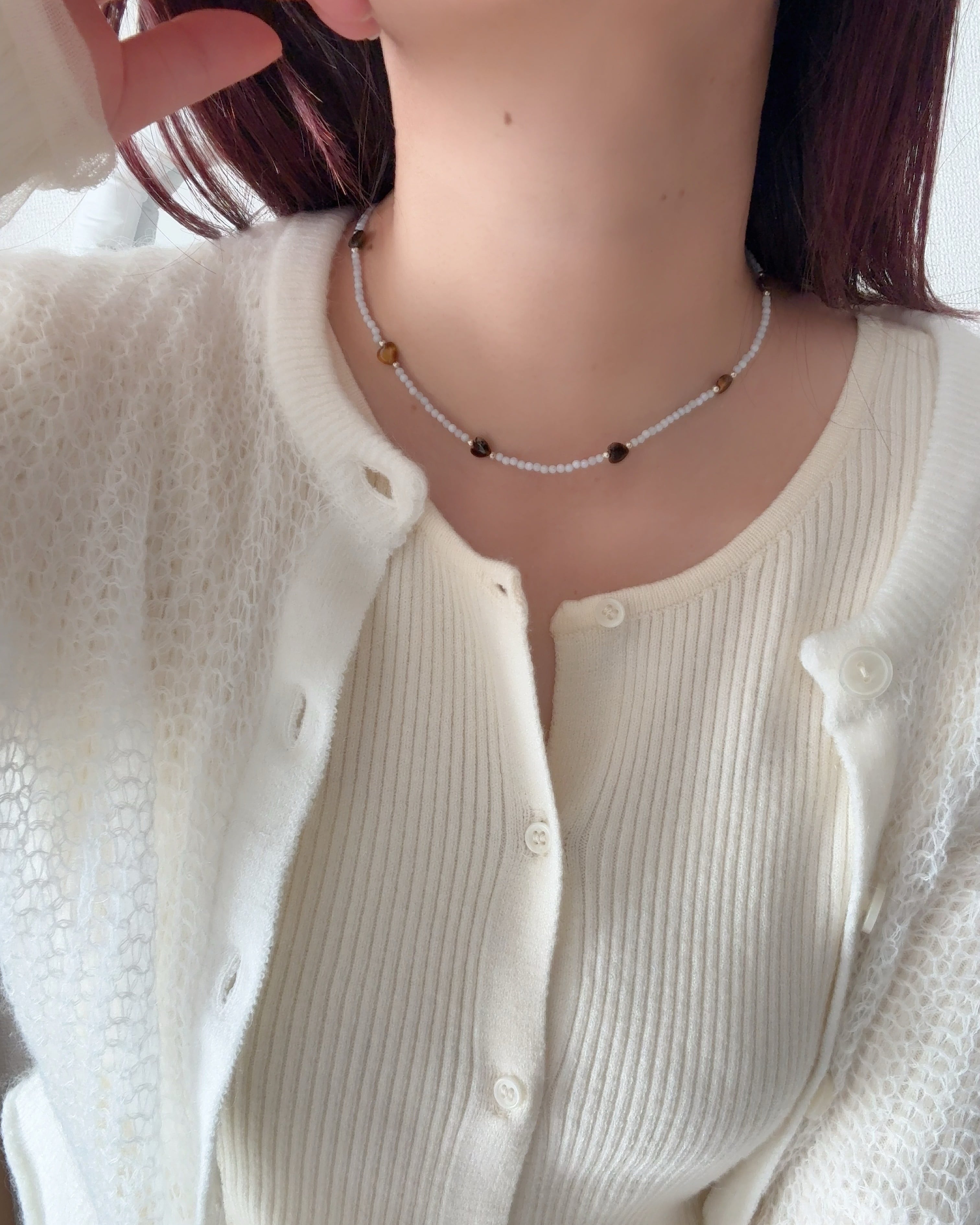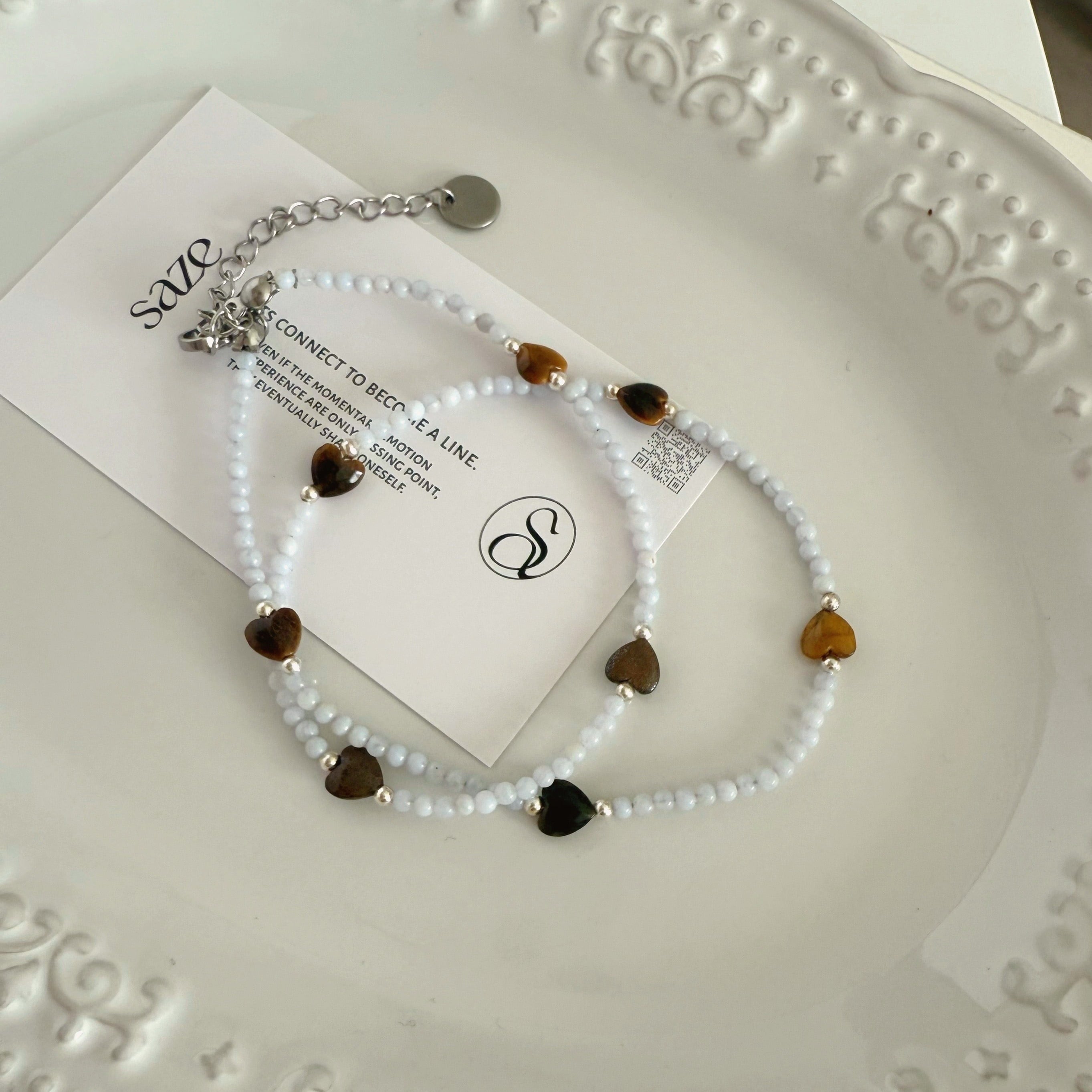 (ビーズ)ブルーレースアゲート・タイガーアイ、真鍮(金具)ステンレス