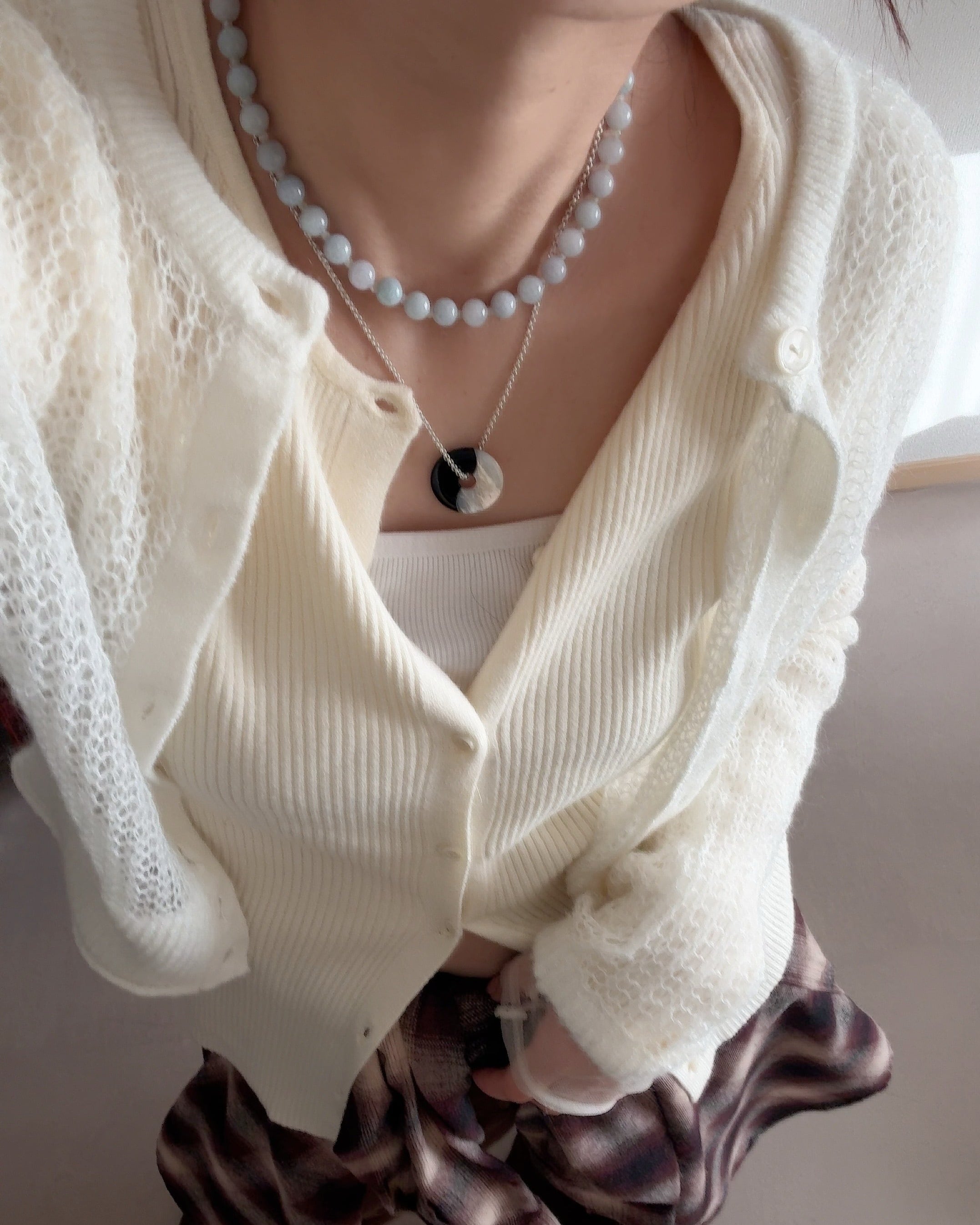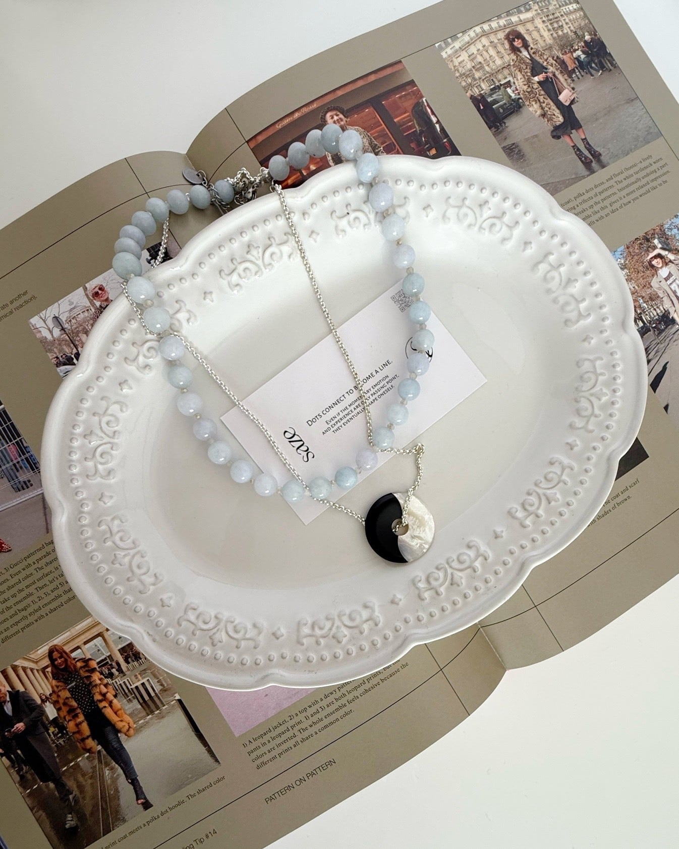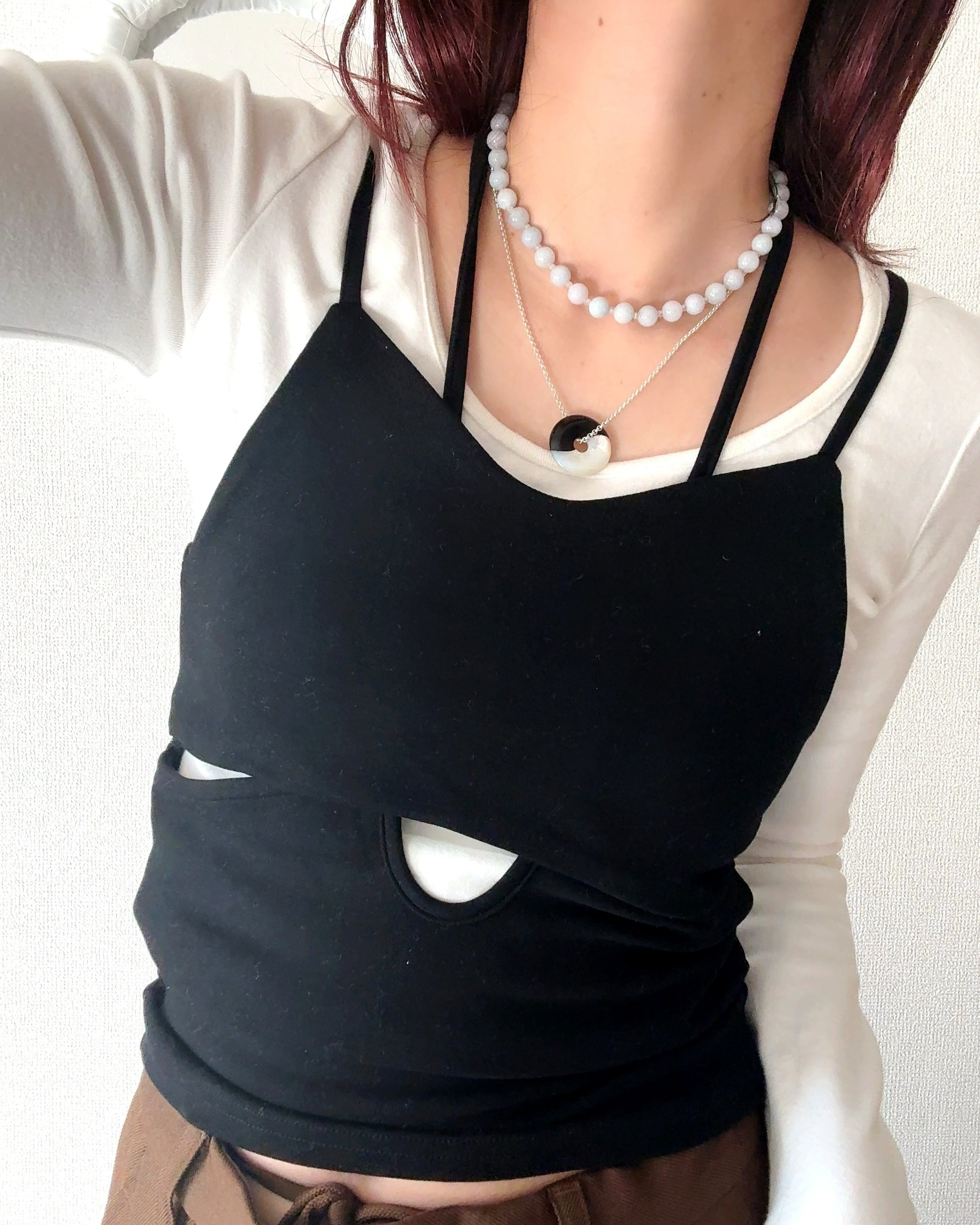 長めのチェーンを合わせているので胸元のポイントにぴったり!