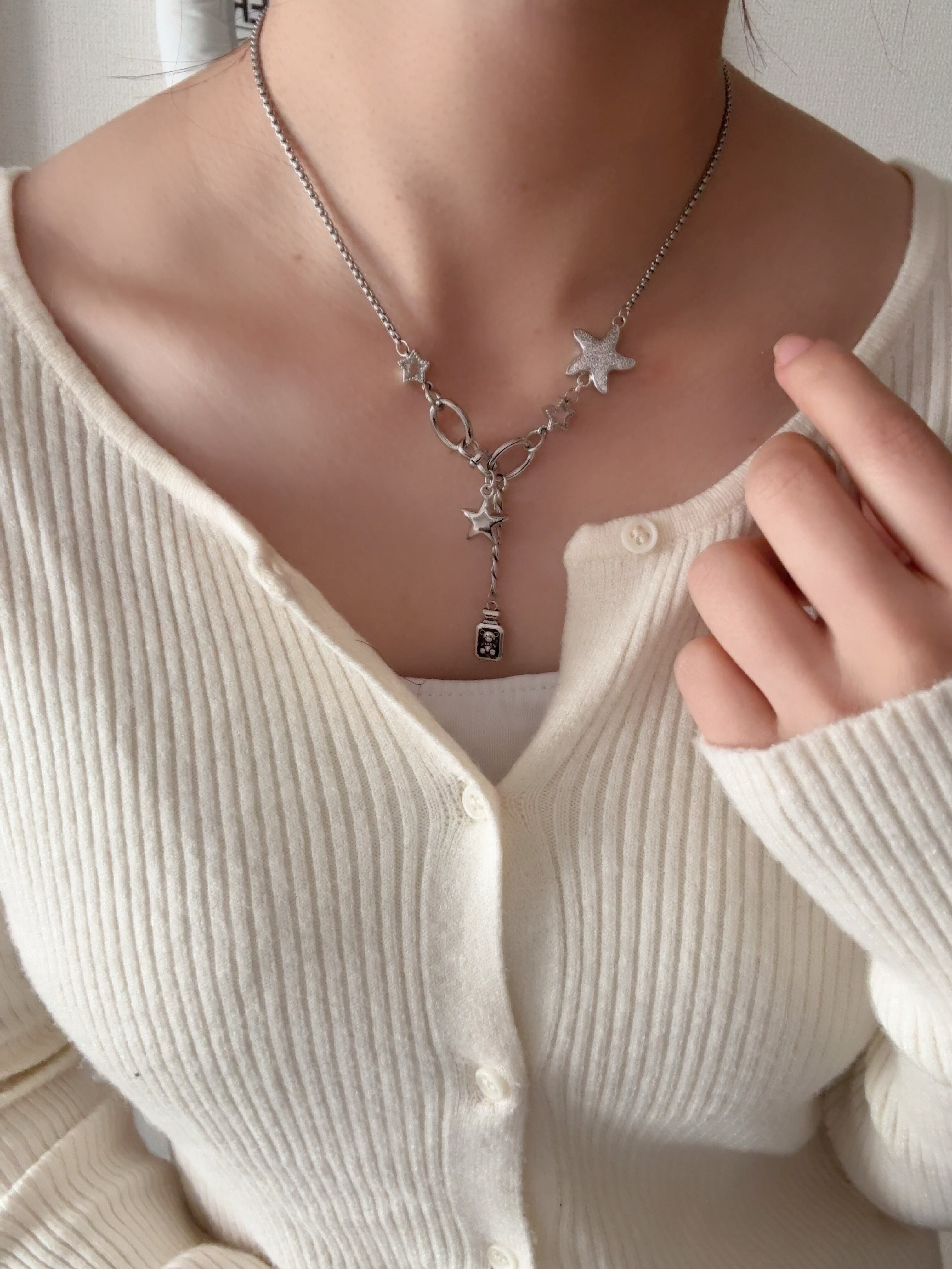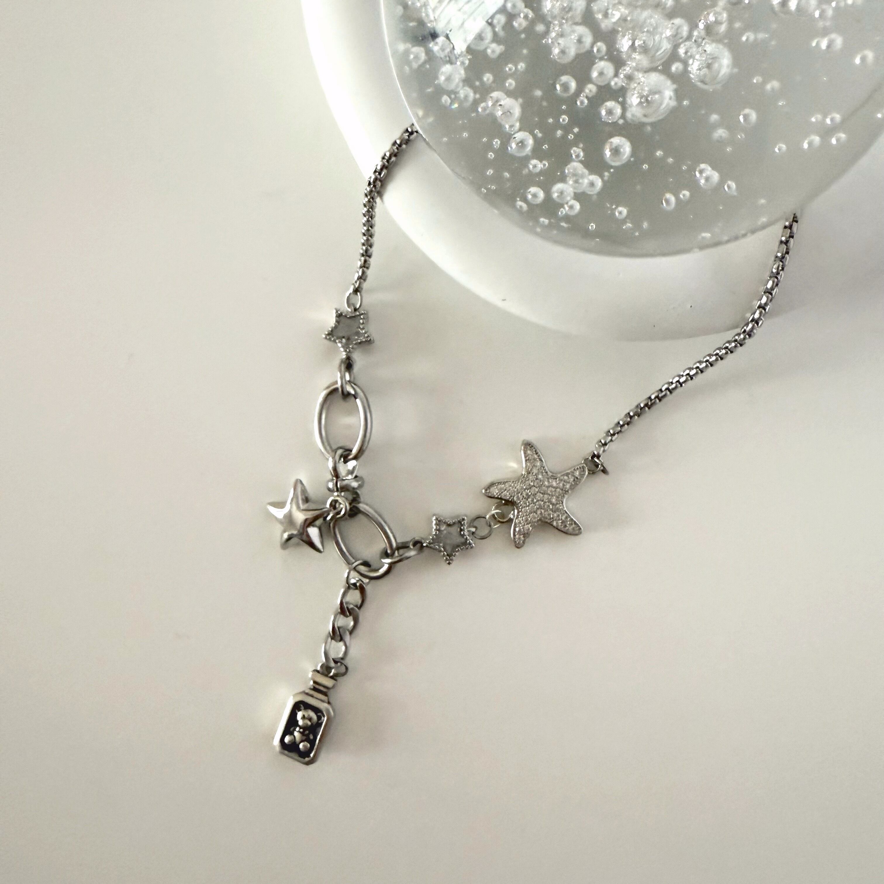 小瓶に詰められたテディが宇宙を旅するネックレス
