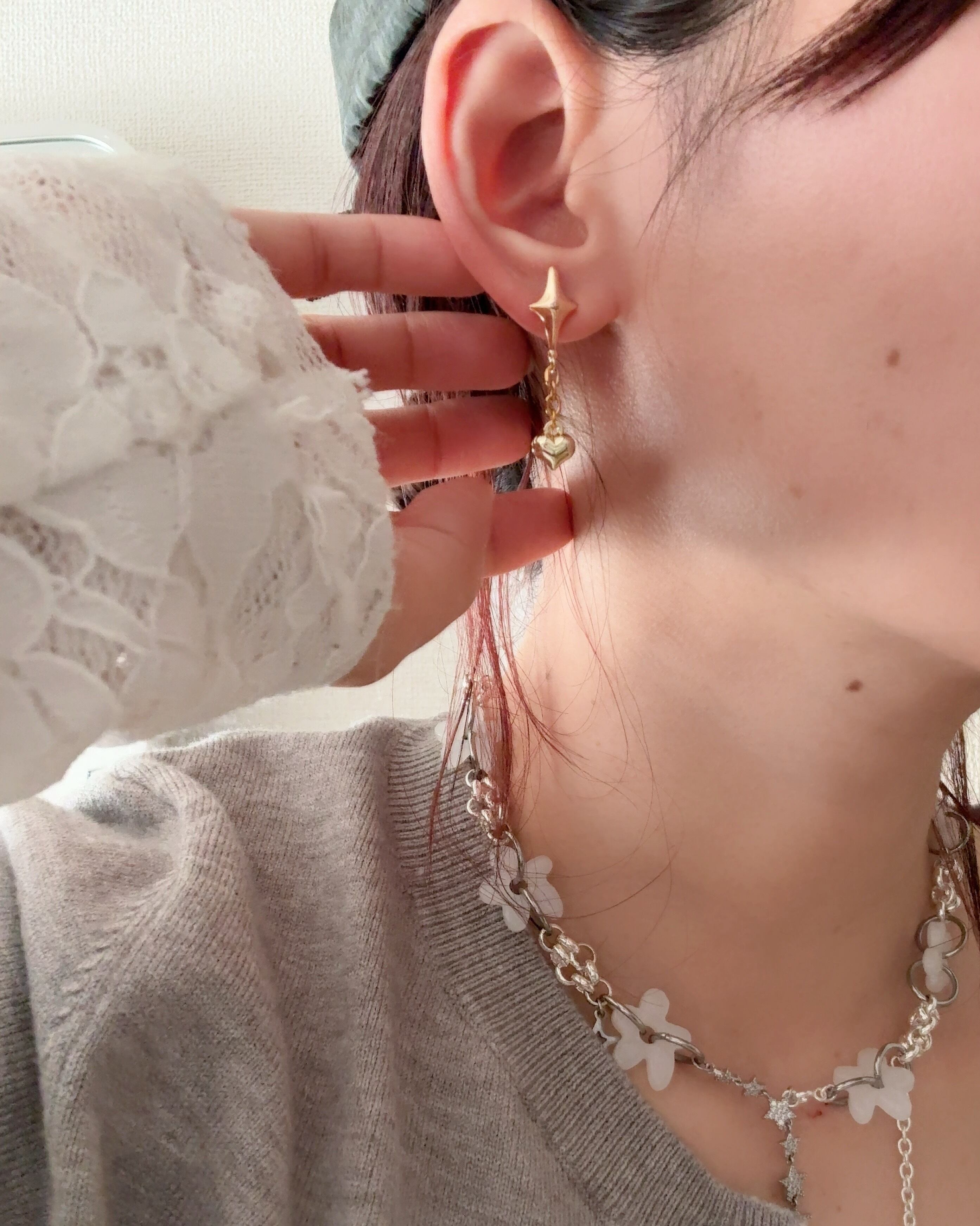 耳元でゆらゆら揺れる華奢なデザインは