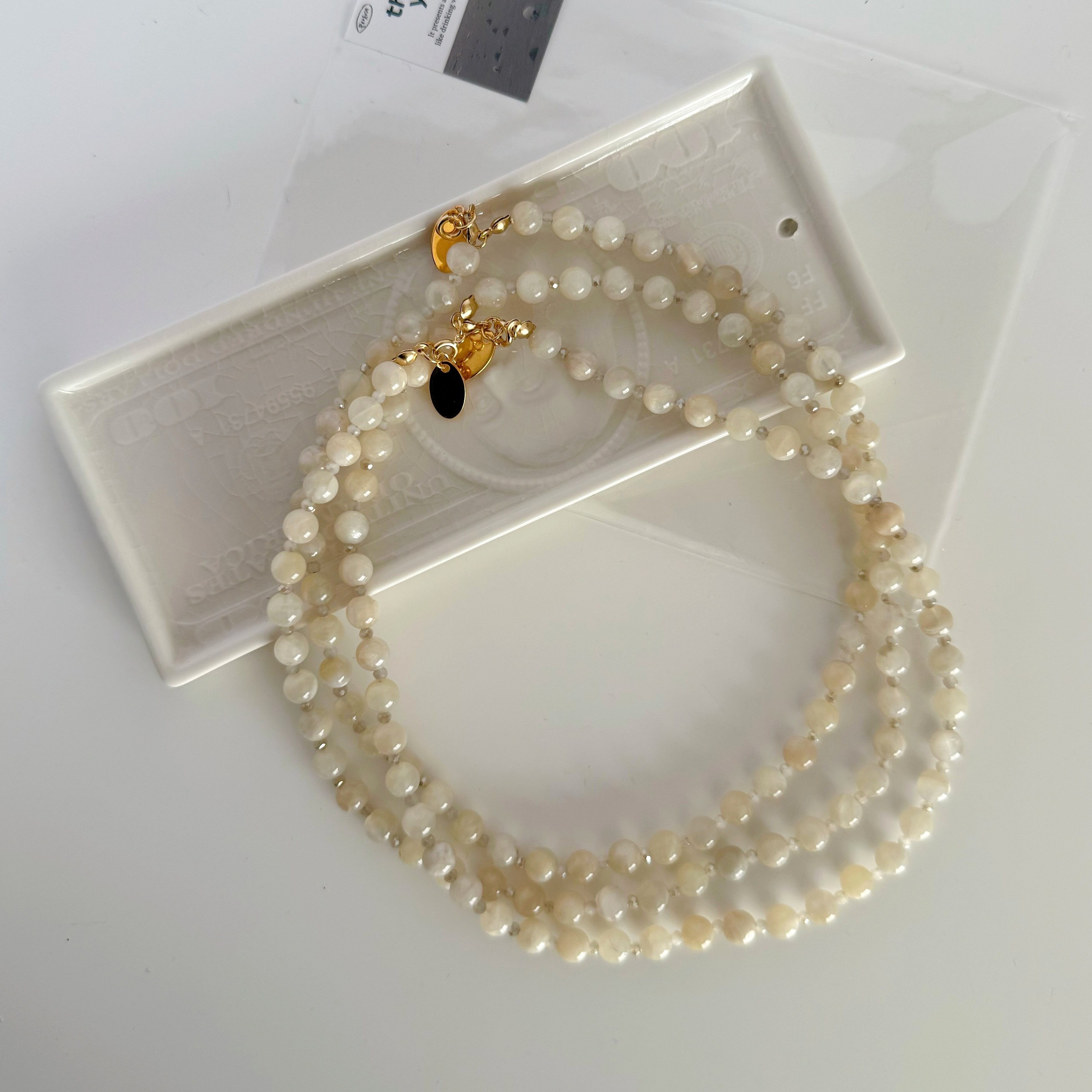 ムーンストーン、ガラスビーズ、ステンレス