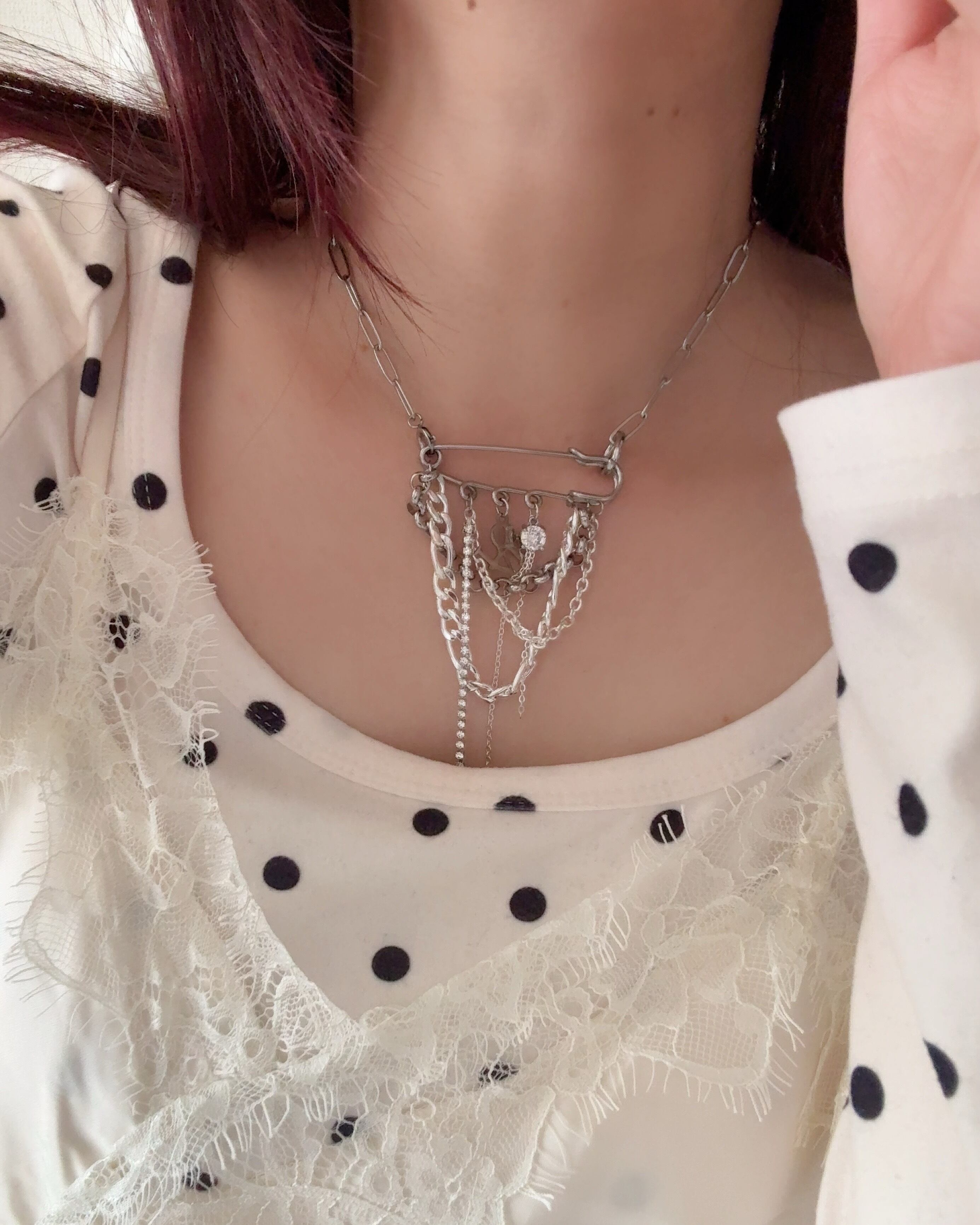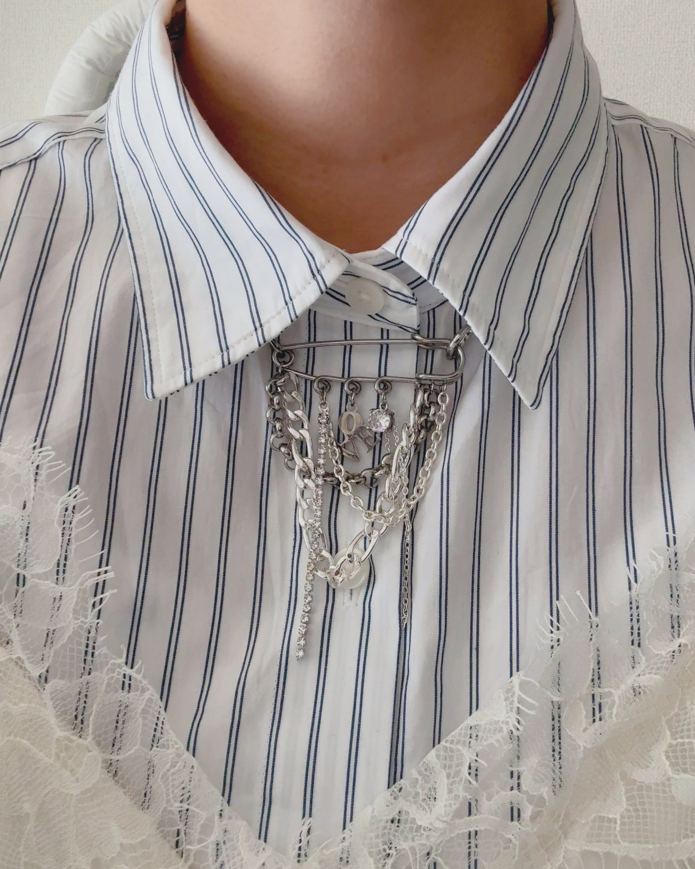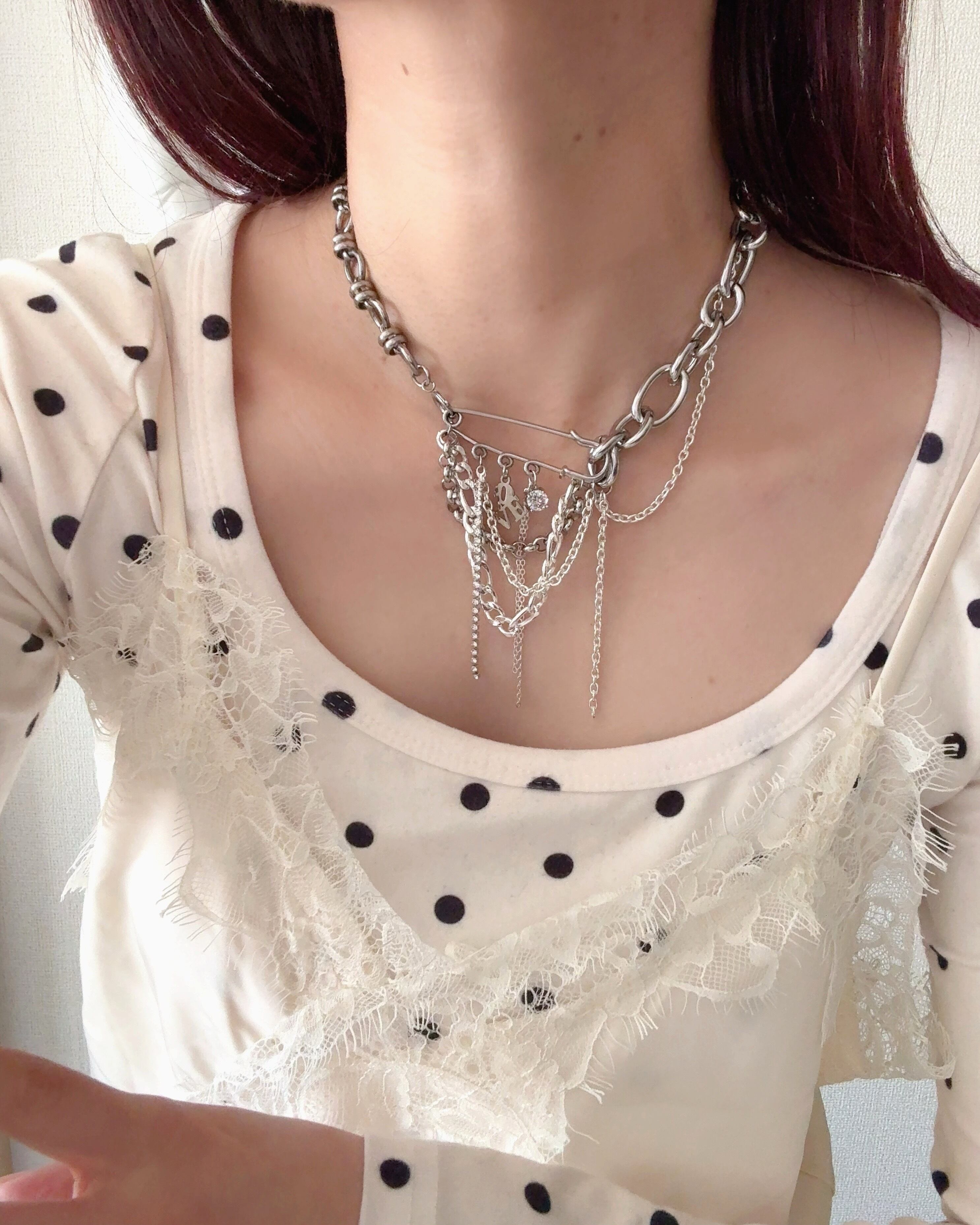華奢なチェーンネックレスなので、ピンチャームを主役にできます。
