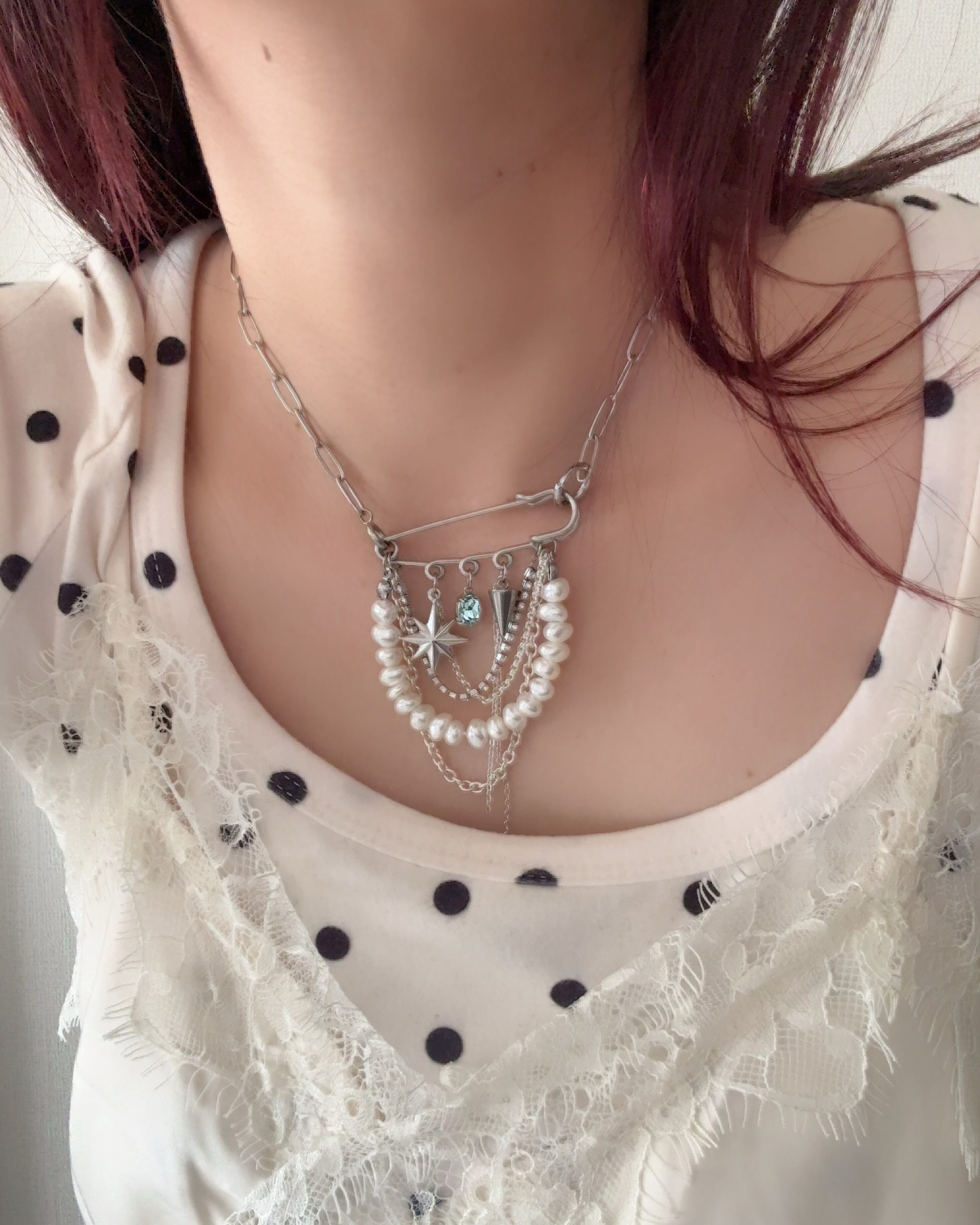 華奢なチェーンネックレスなので、ピンチャームを主役にできます。