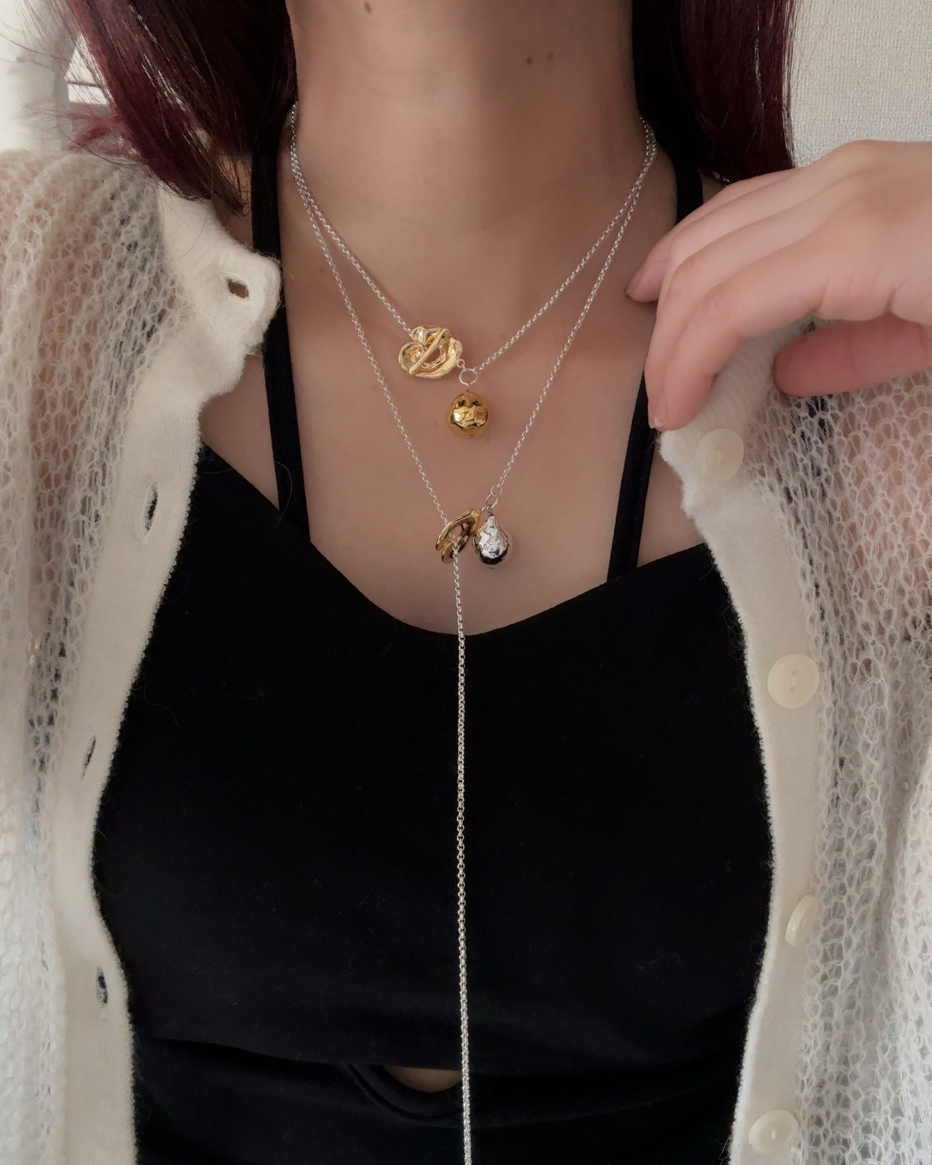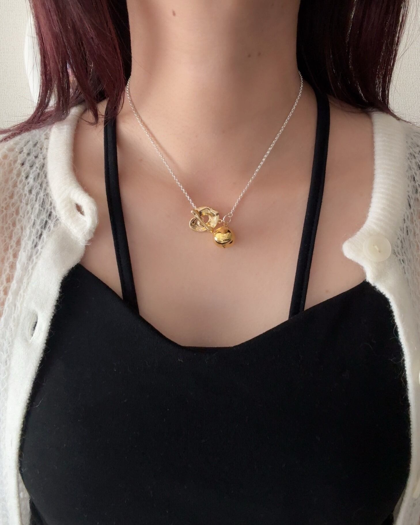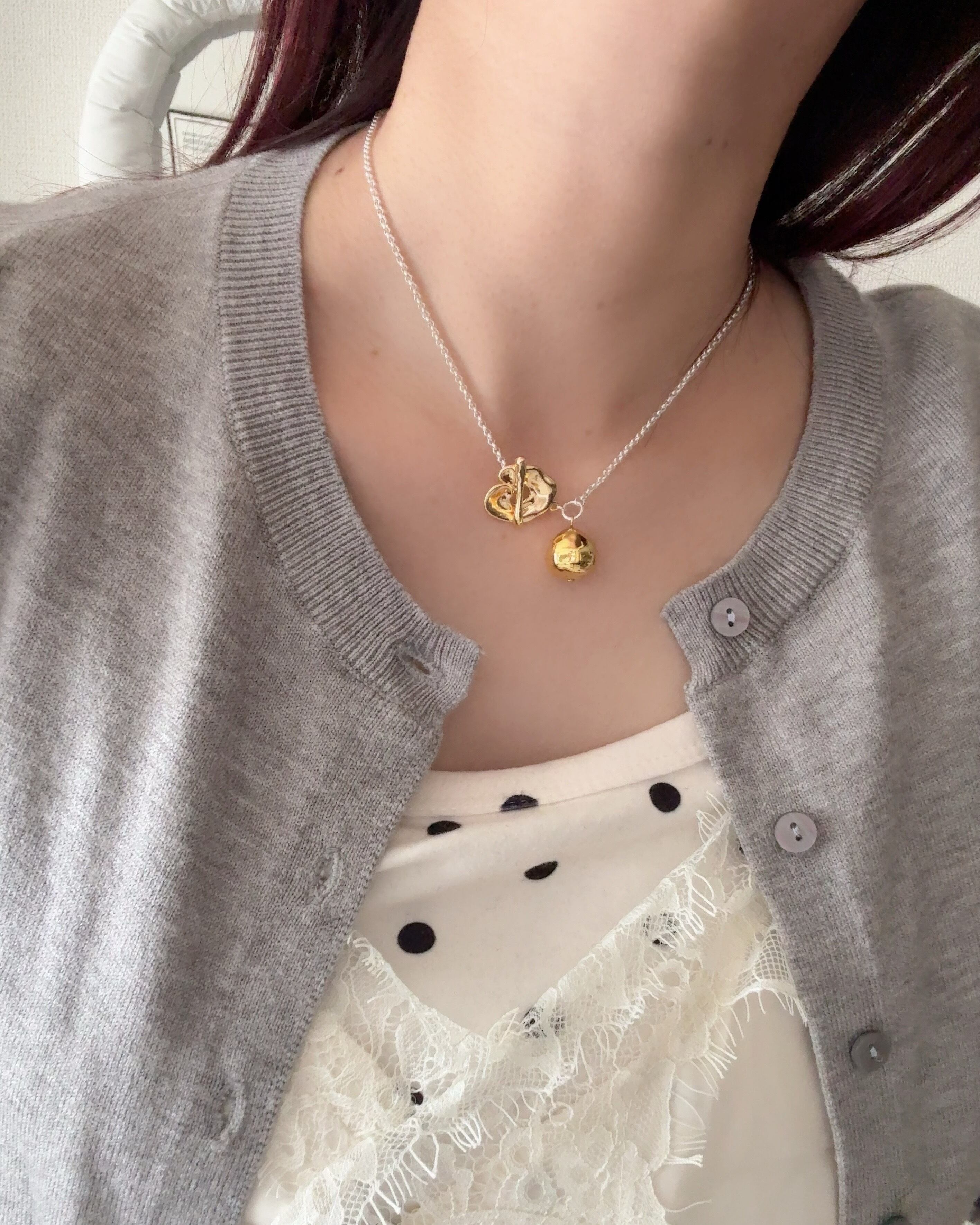 (チャーム)淡水パール、(留め具)真鍮、(チェーン)ステンレス