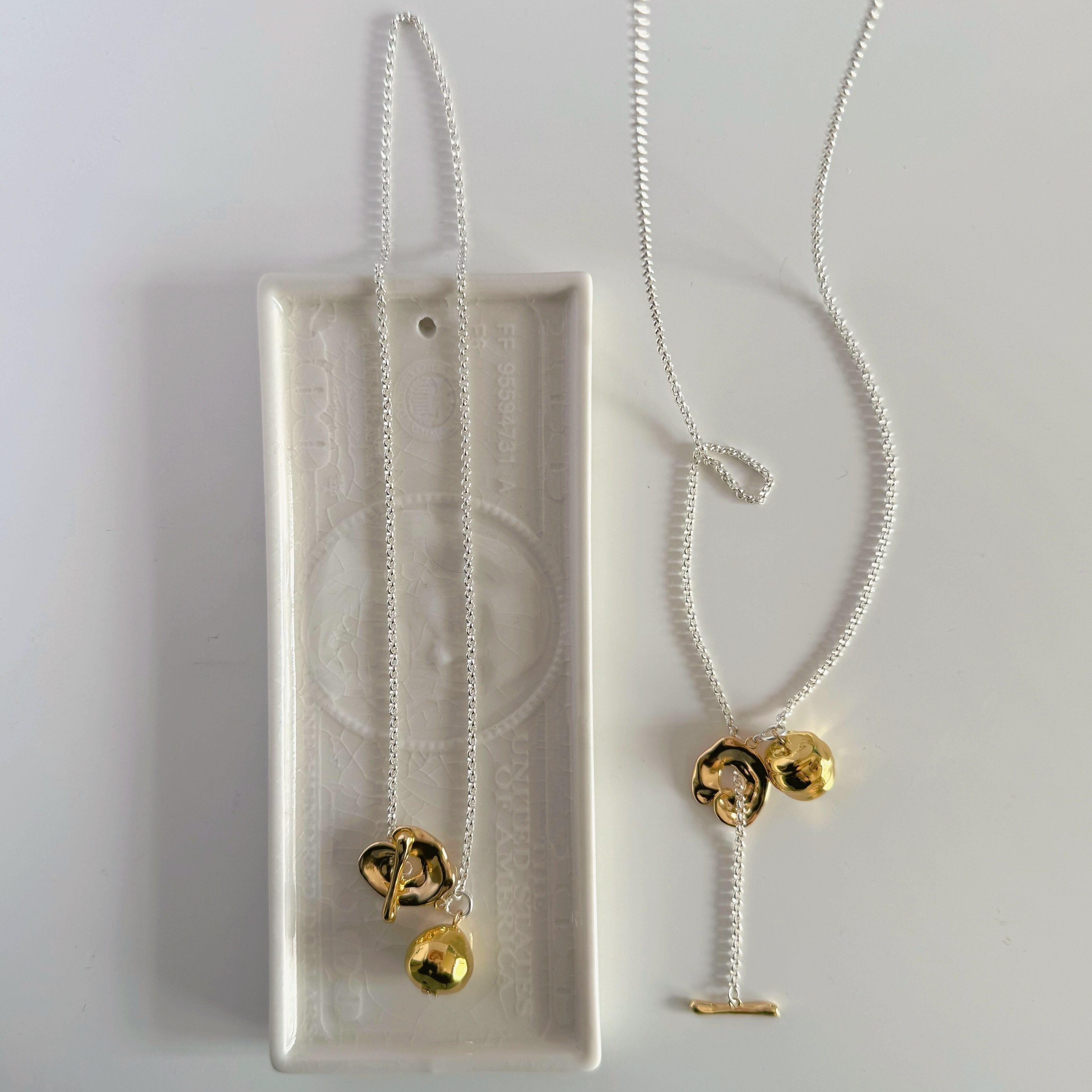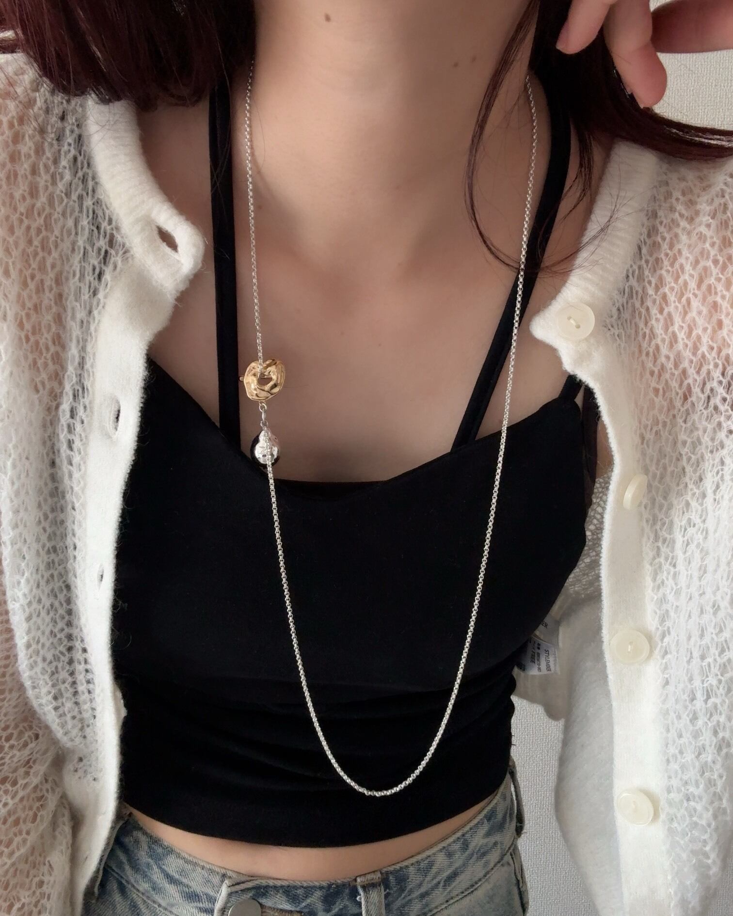 metal pearl lariat necklace[GOLD]