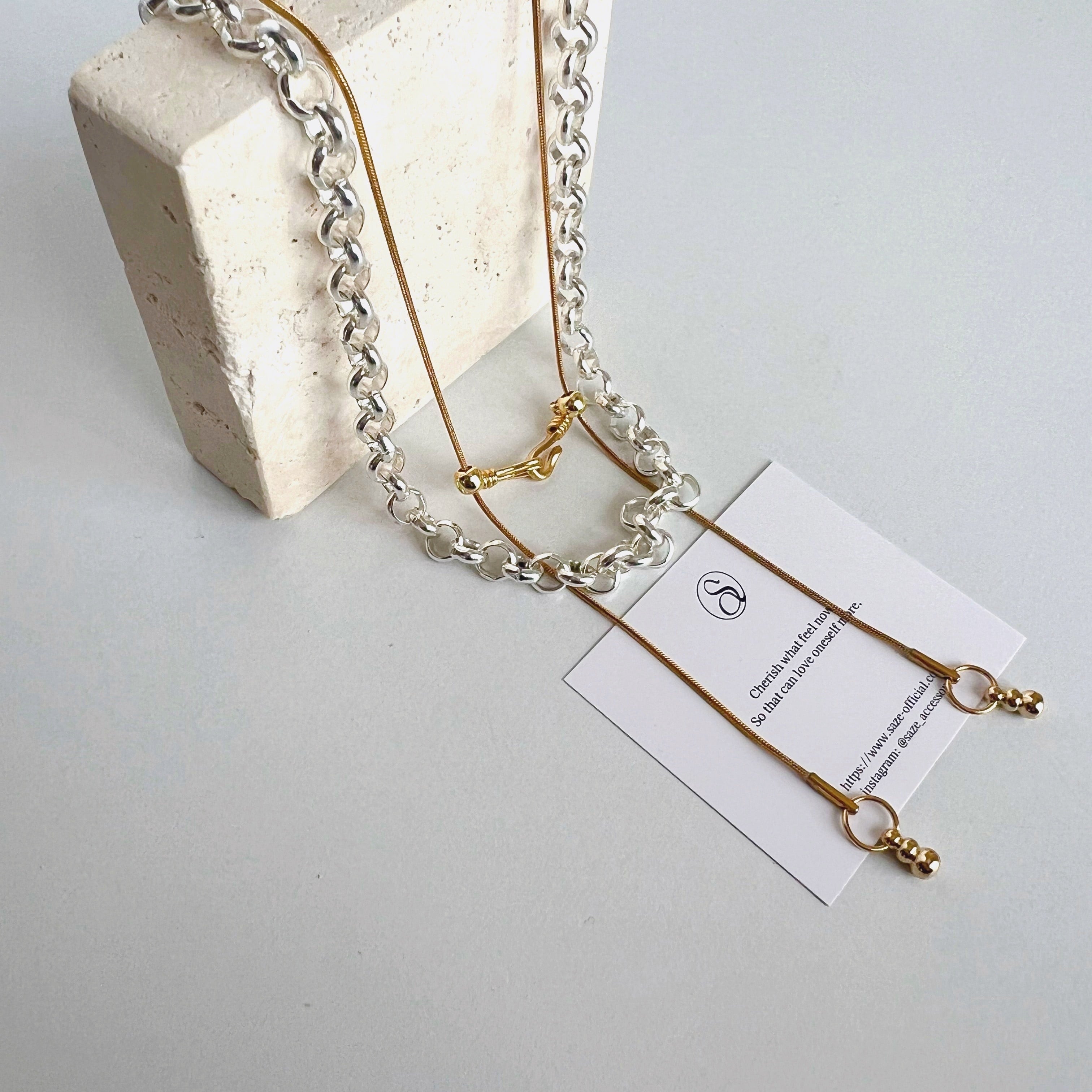 freely double chain necklace -SILVER MIX-