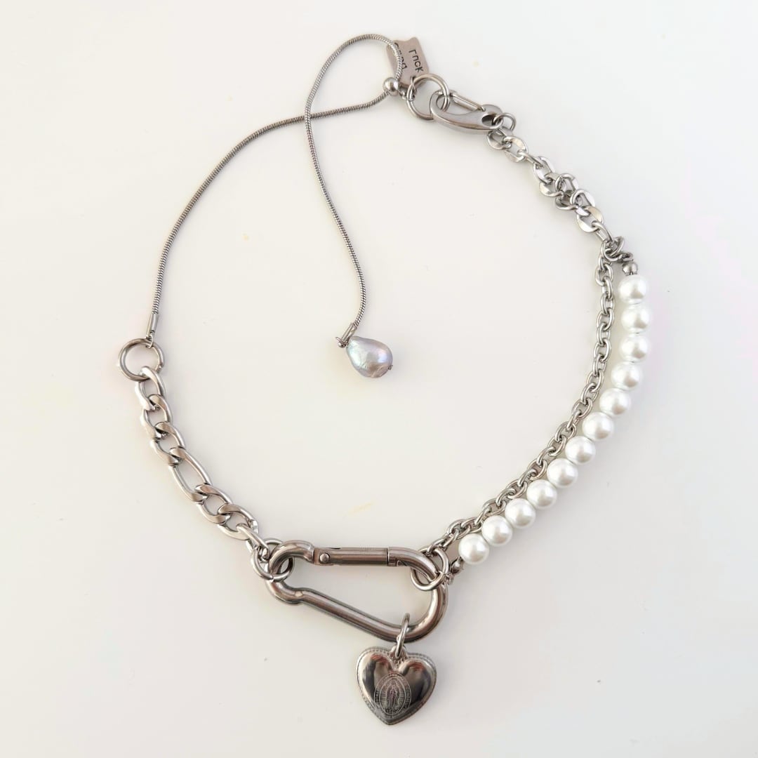 Mariaの刻印が両面に入ったハートのペンダントがかわいらしく、