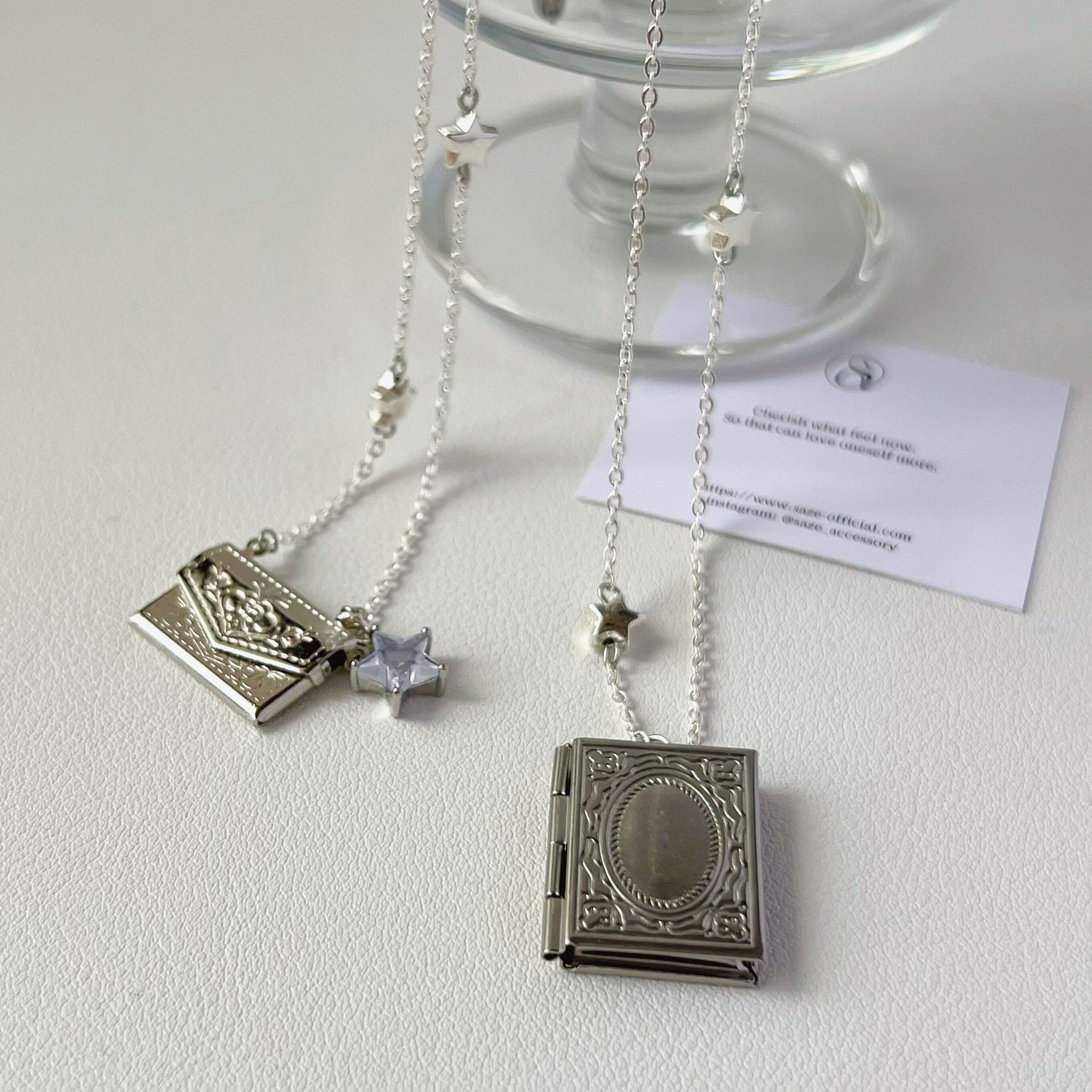 (チェーン)ステンレス、(BAG)真鍮、ガラスストーン(BOOKチャーム)ステンレス